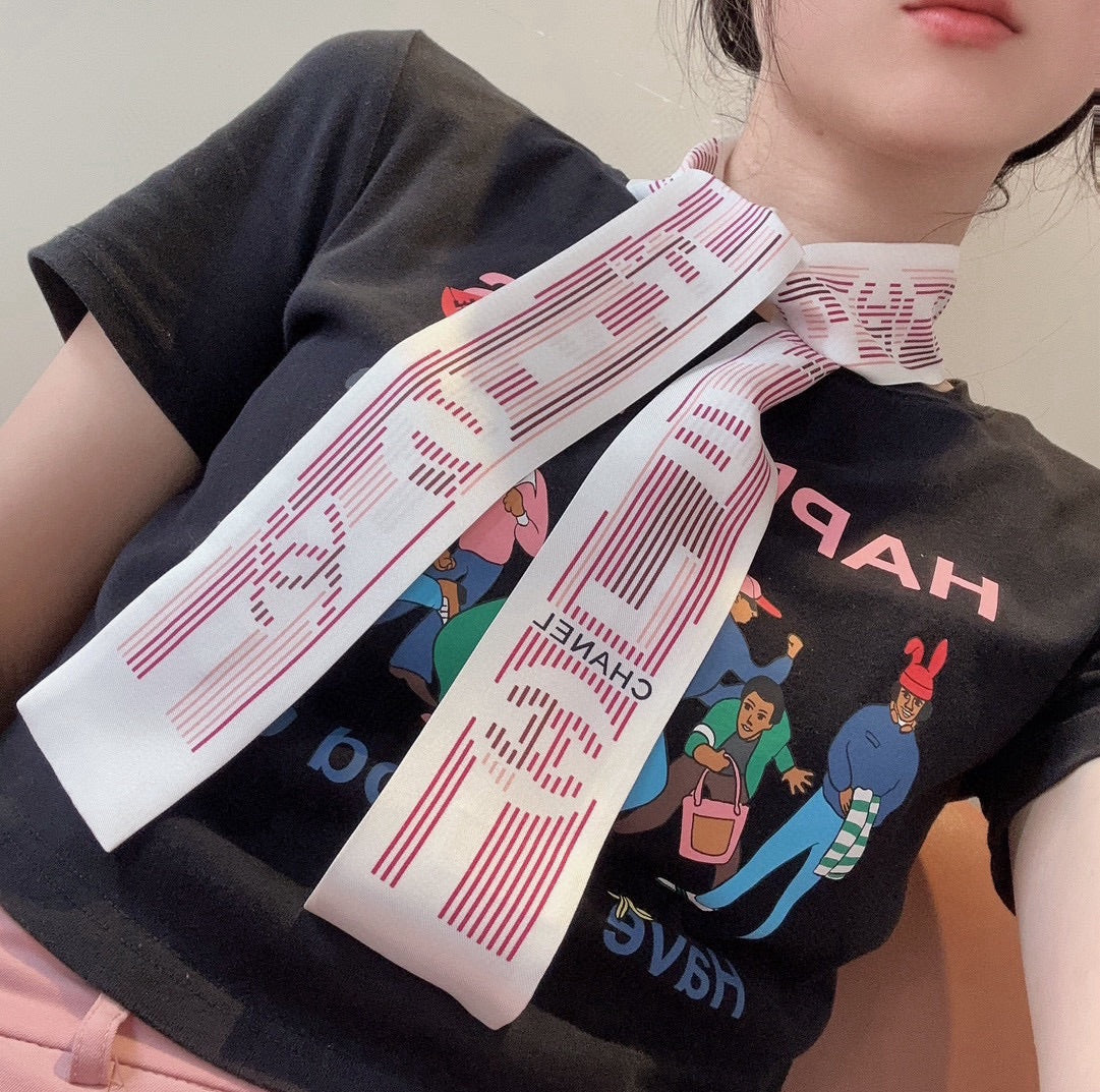 CC Slim Bandeau 120 CM In White Mix Pink Silk Twill 254682
