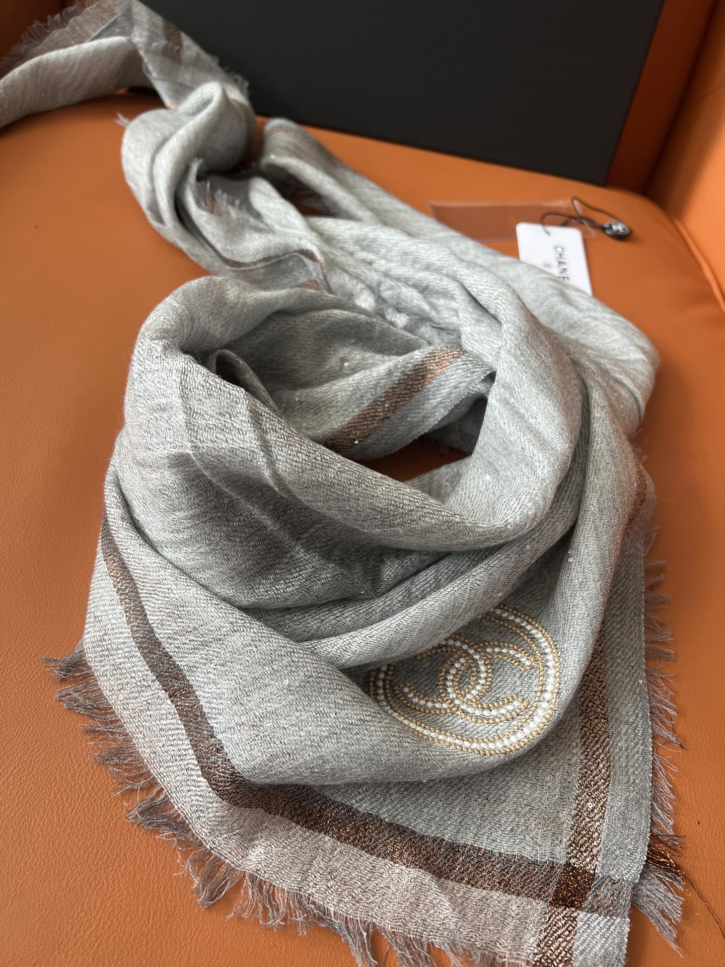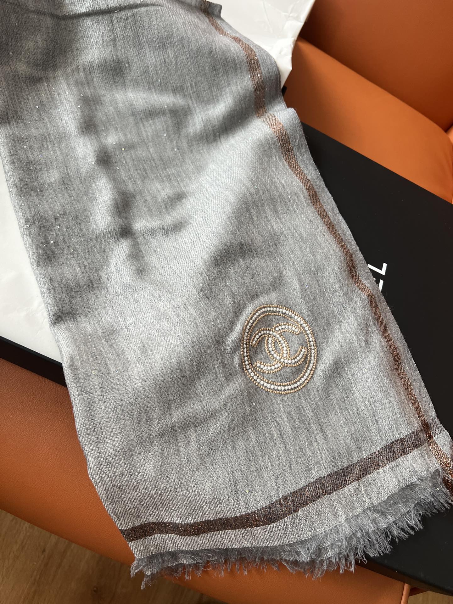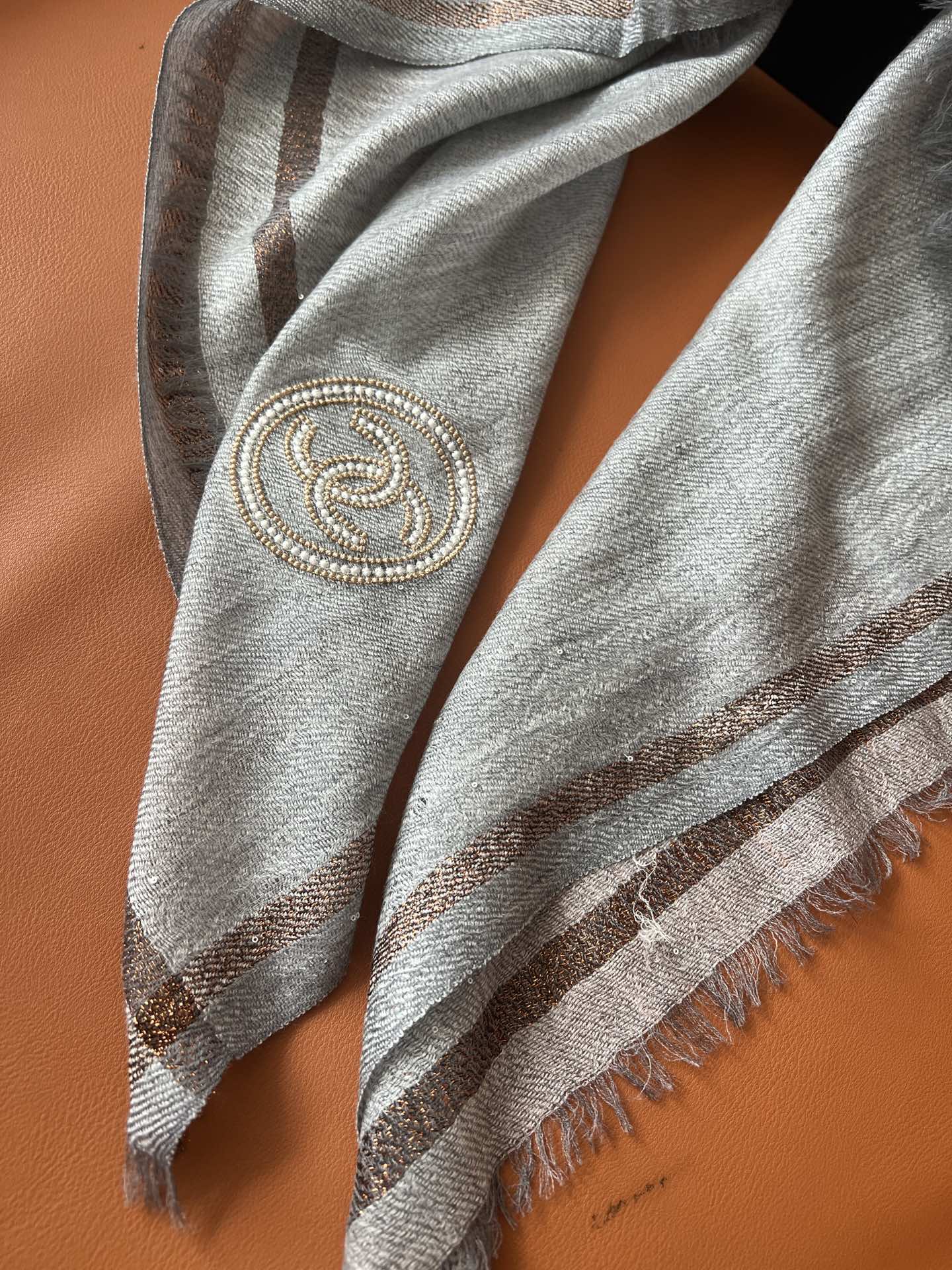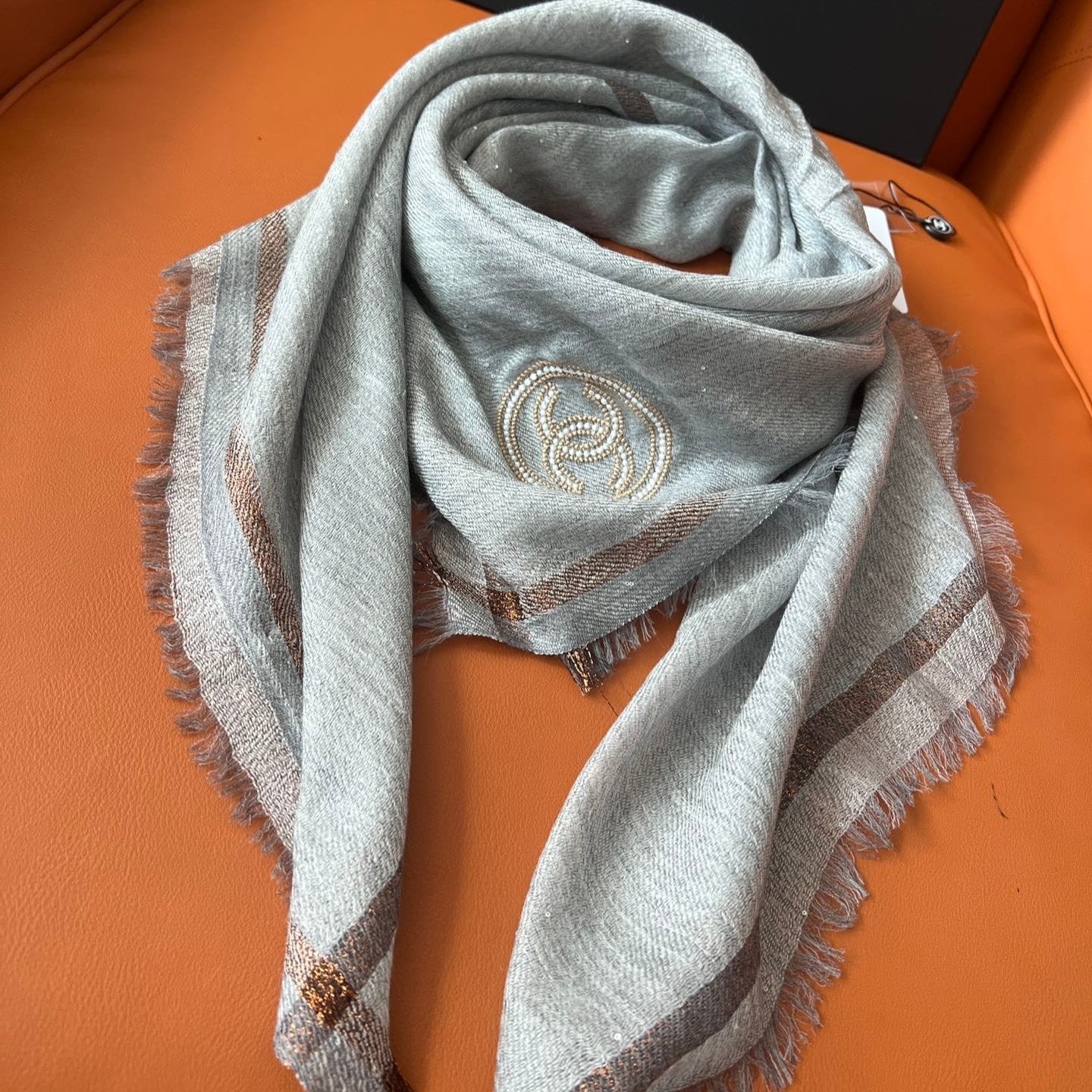 CC Square Scarf 100 CM In Grey Cashmere And Wool Mix Sequin Fabric 345992