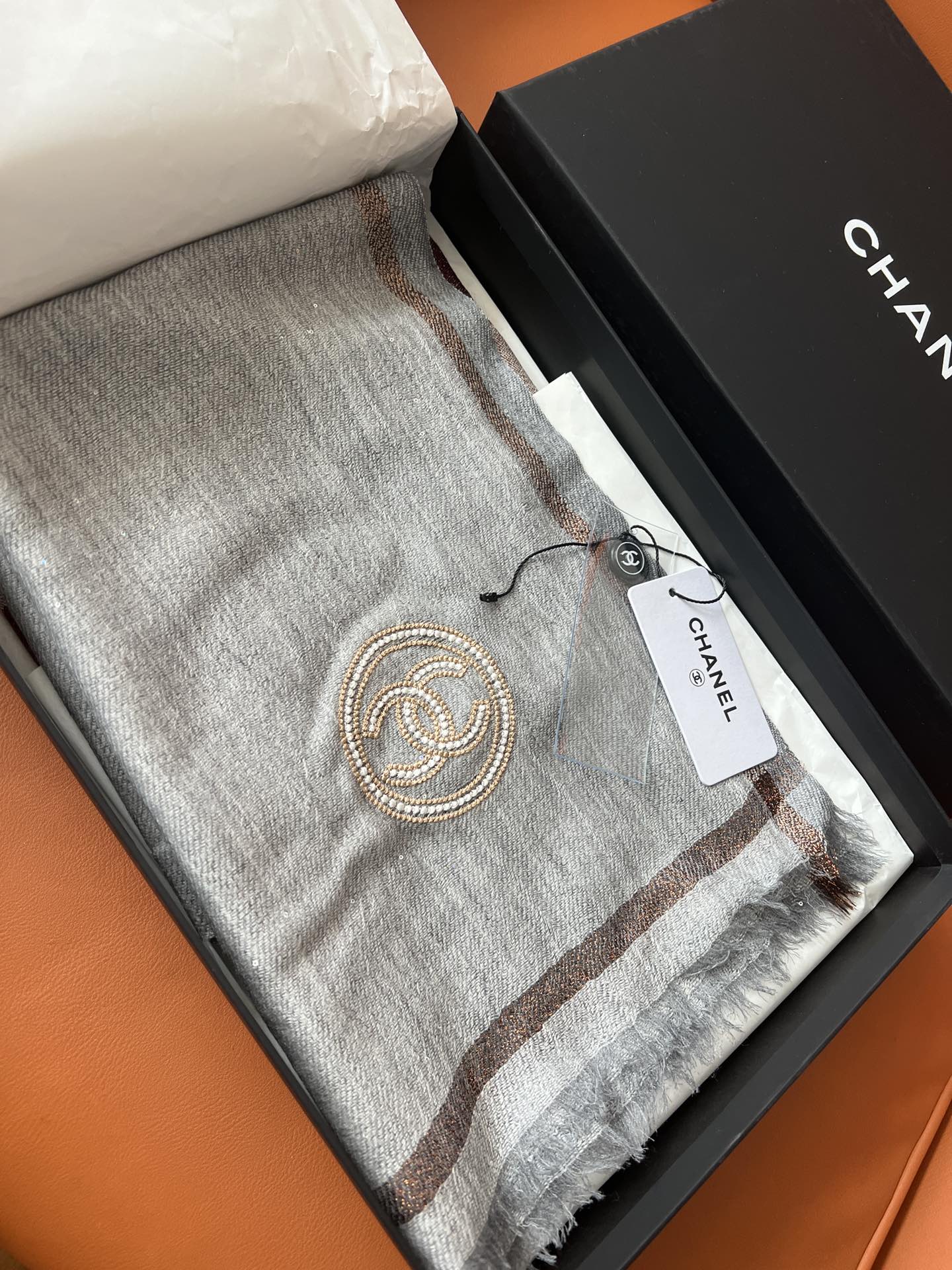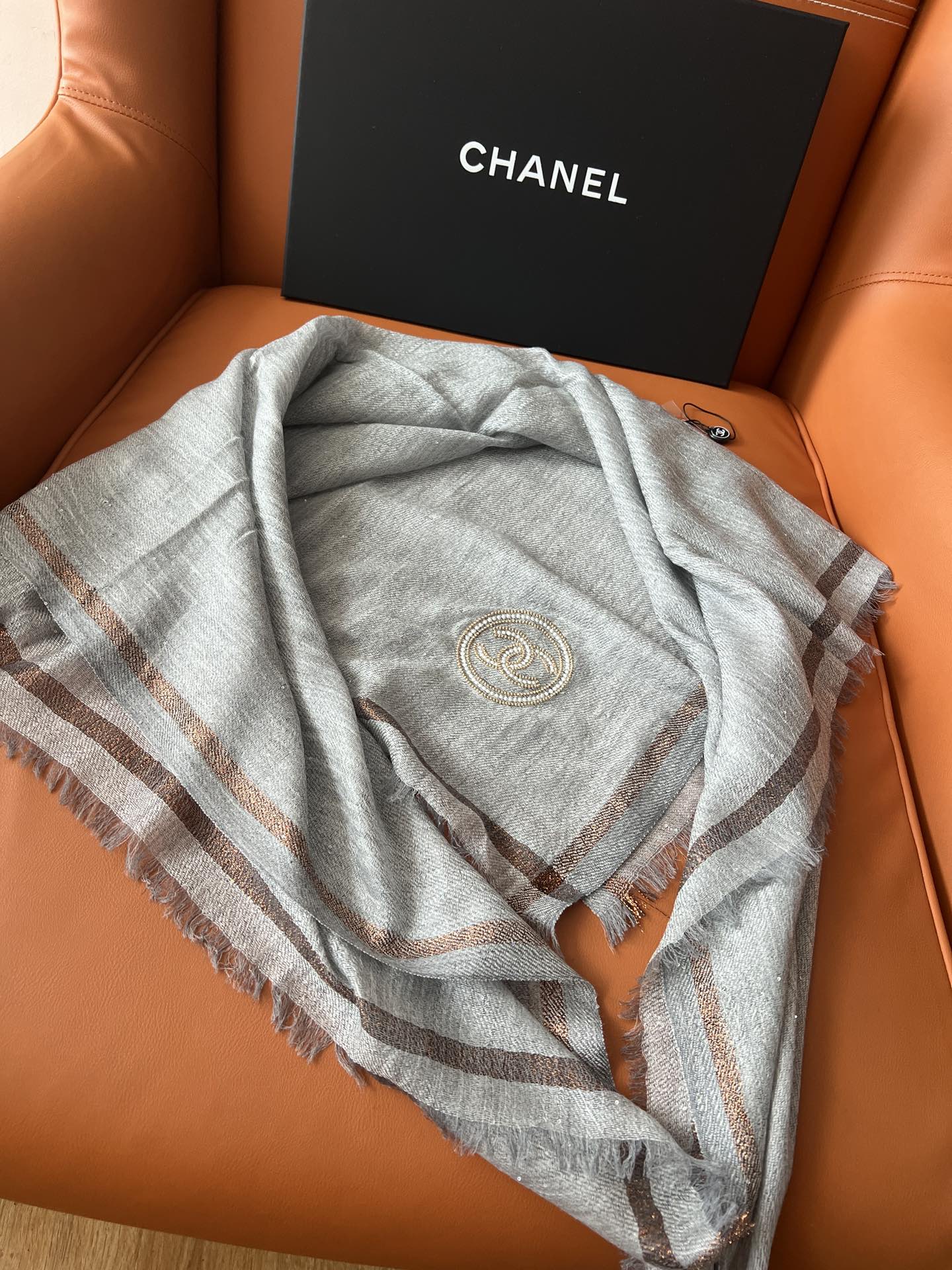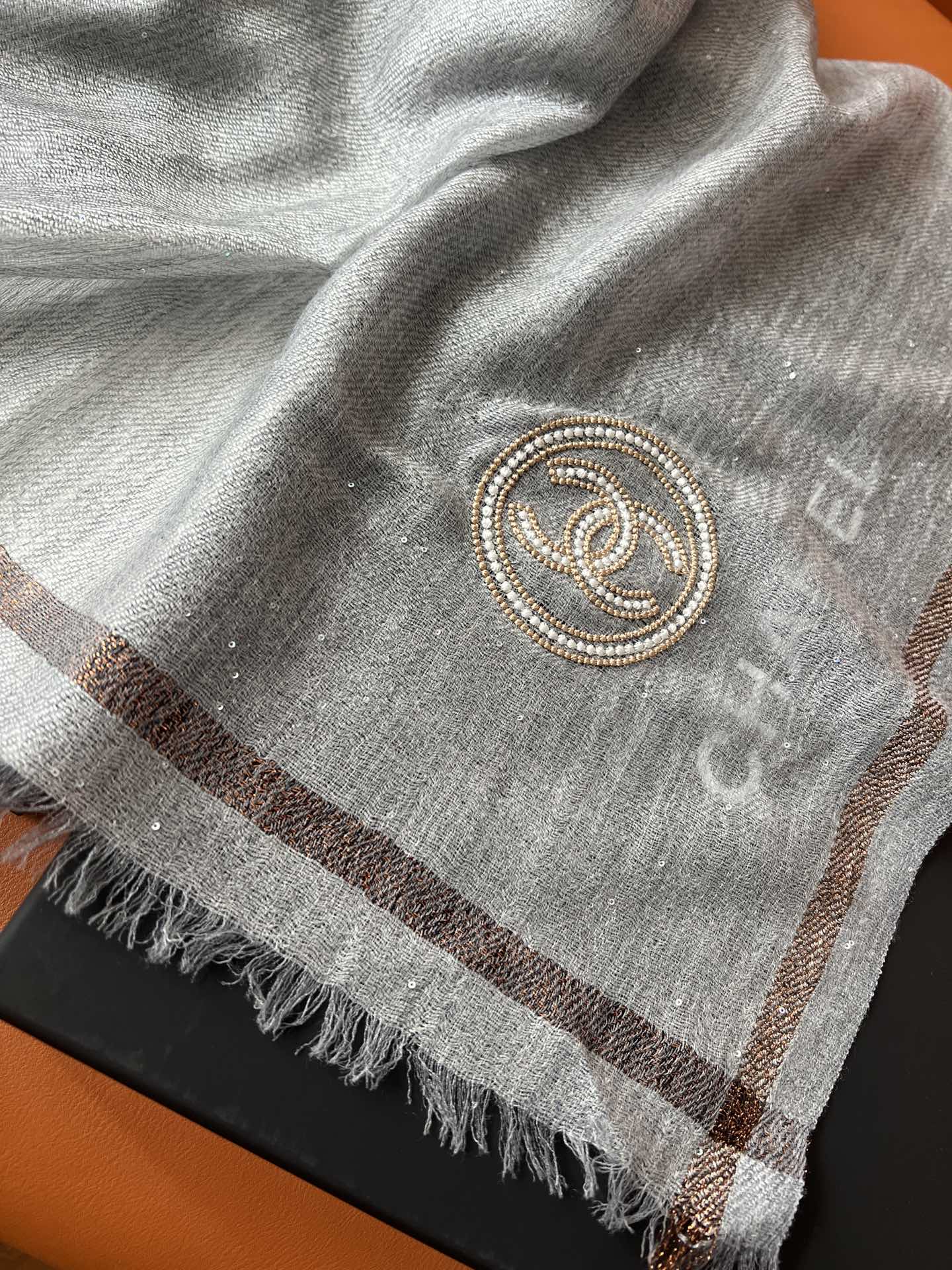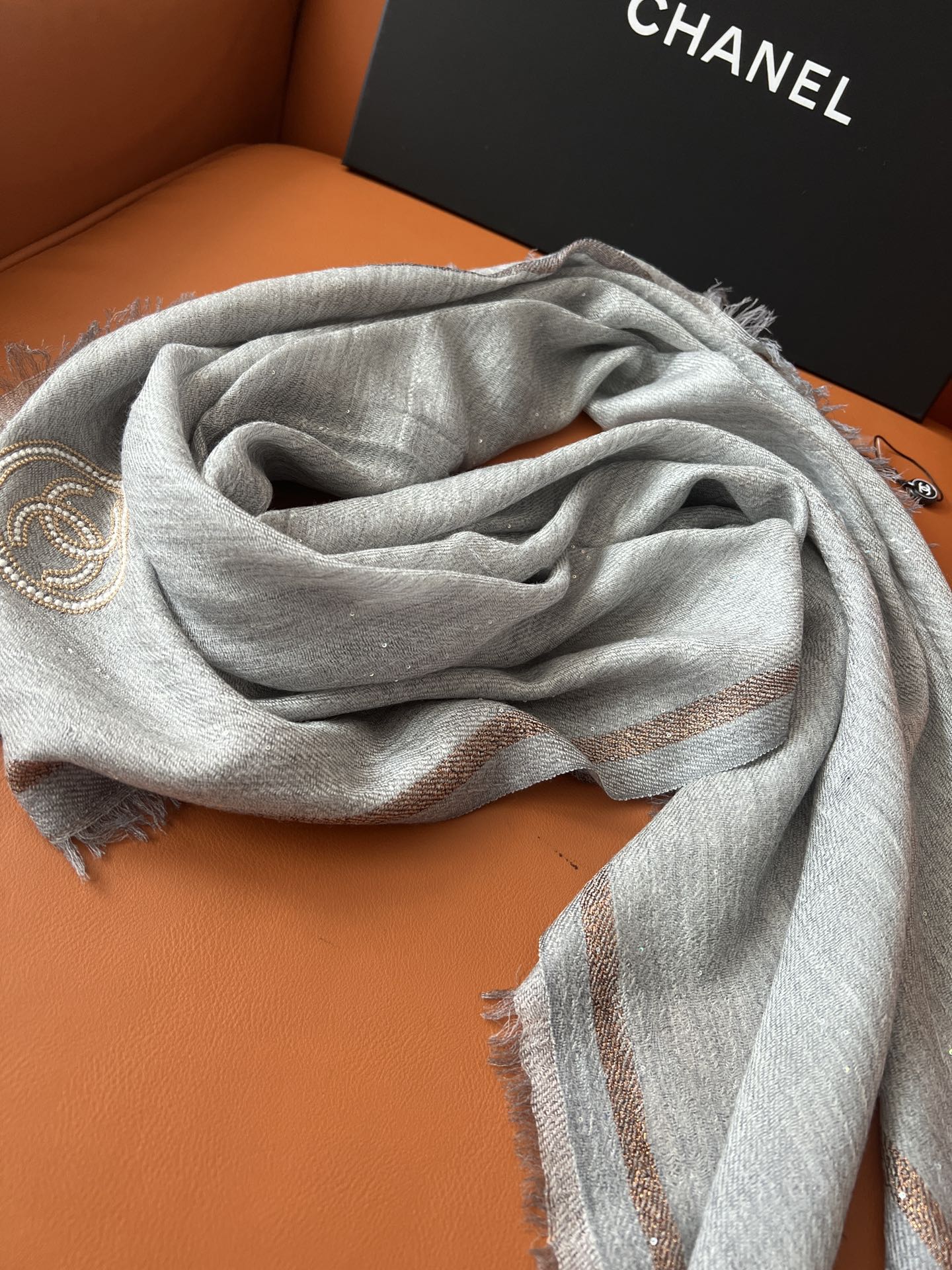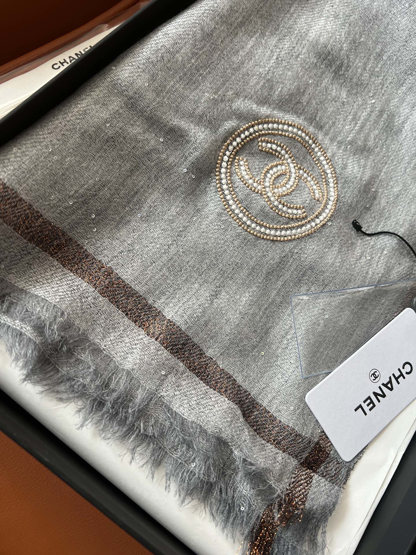 CC Square Scarf 100 CM In Grey Cashmere And Wool Mix Sequin Fabric 345992