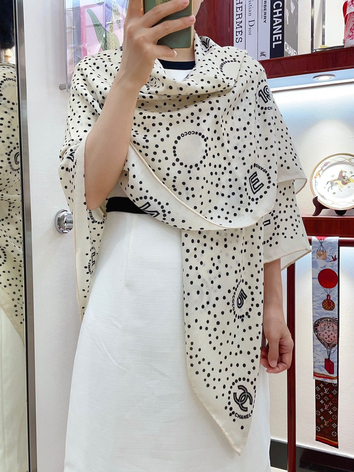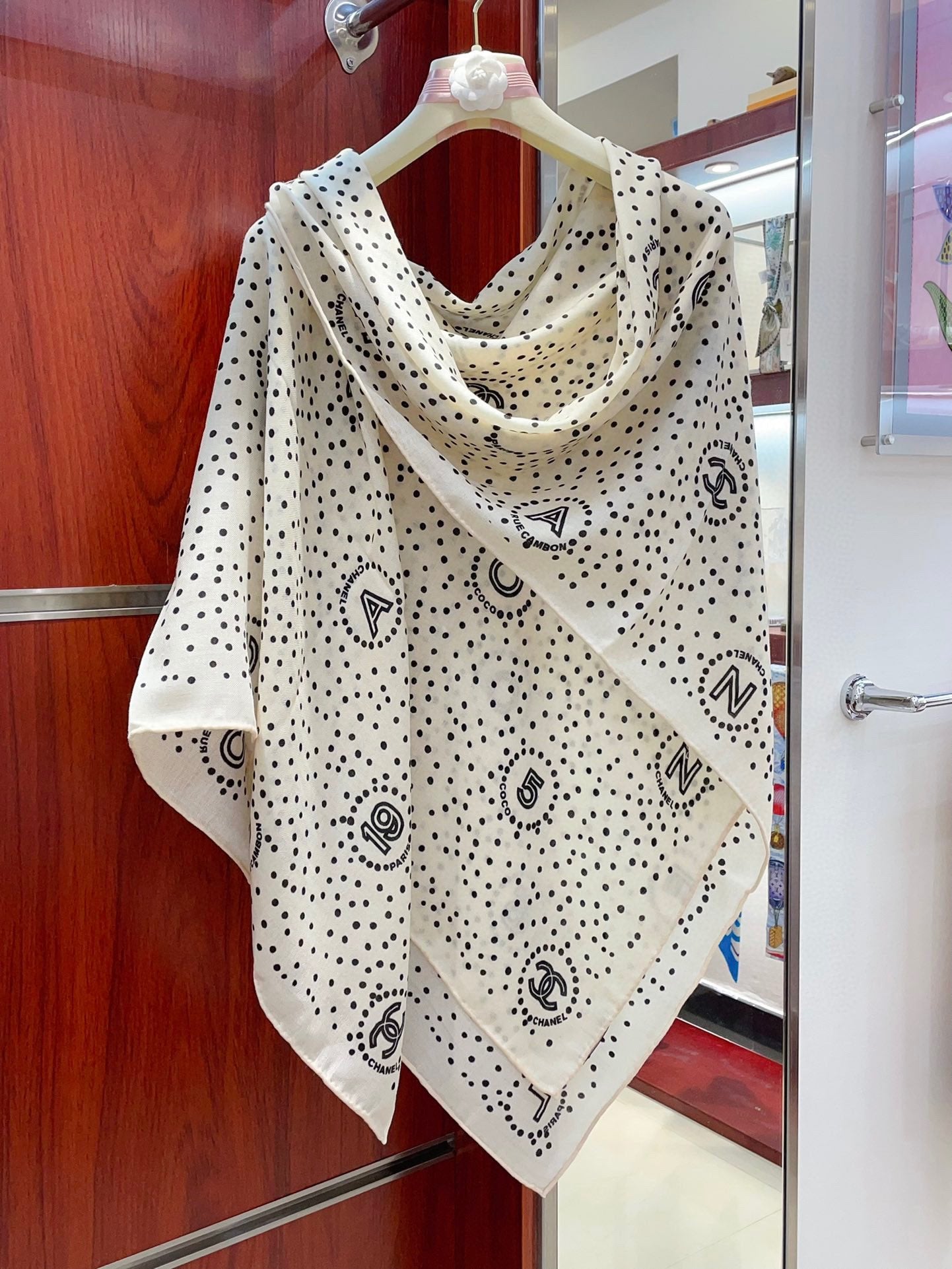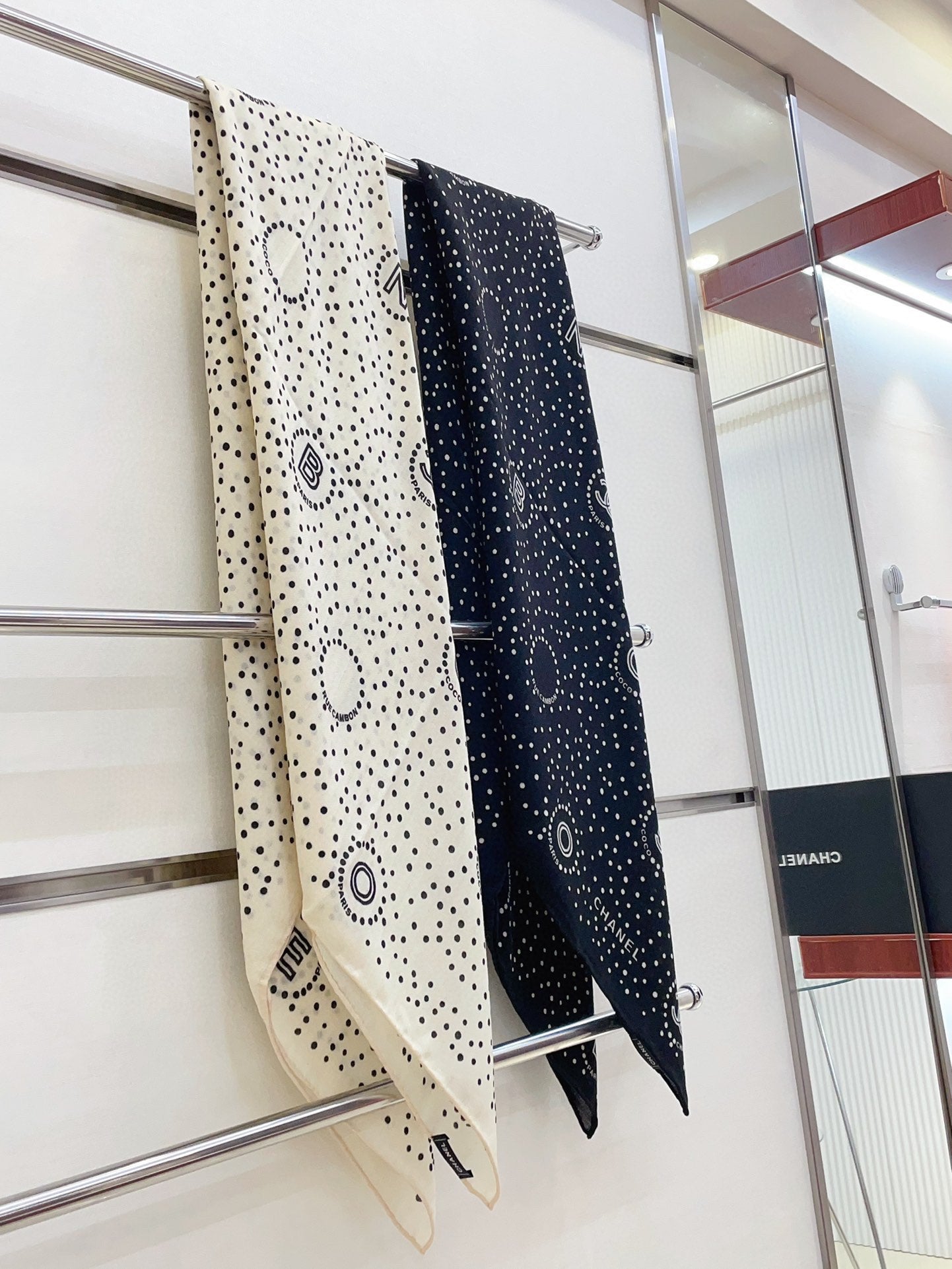 CC Square Scarf 140 CM In White Black Polka Dot Cashmere Silk 337146