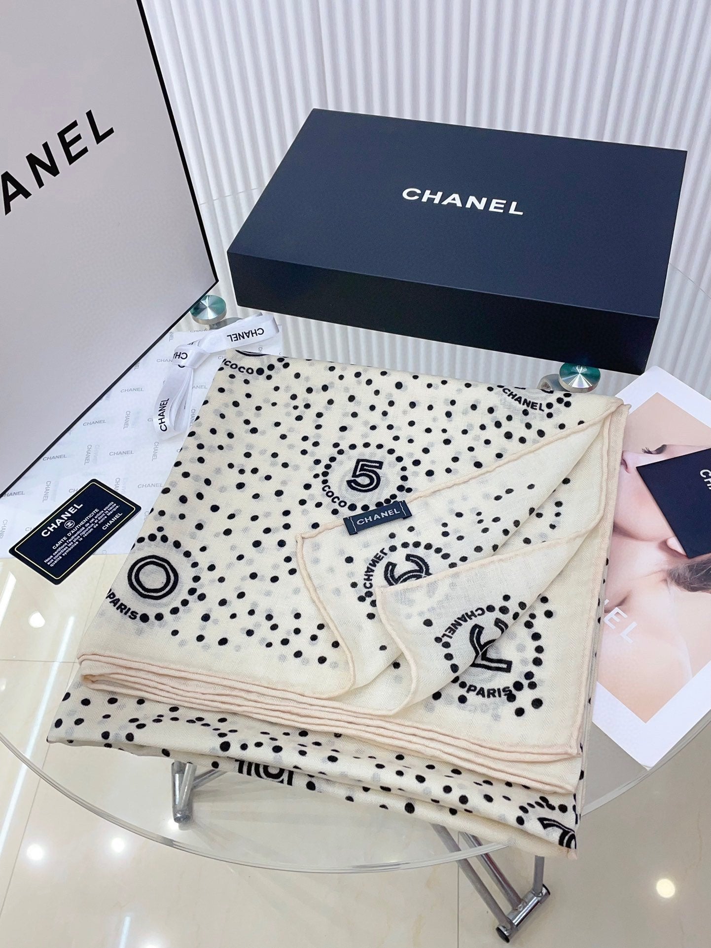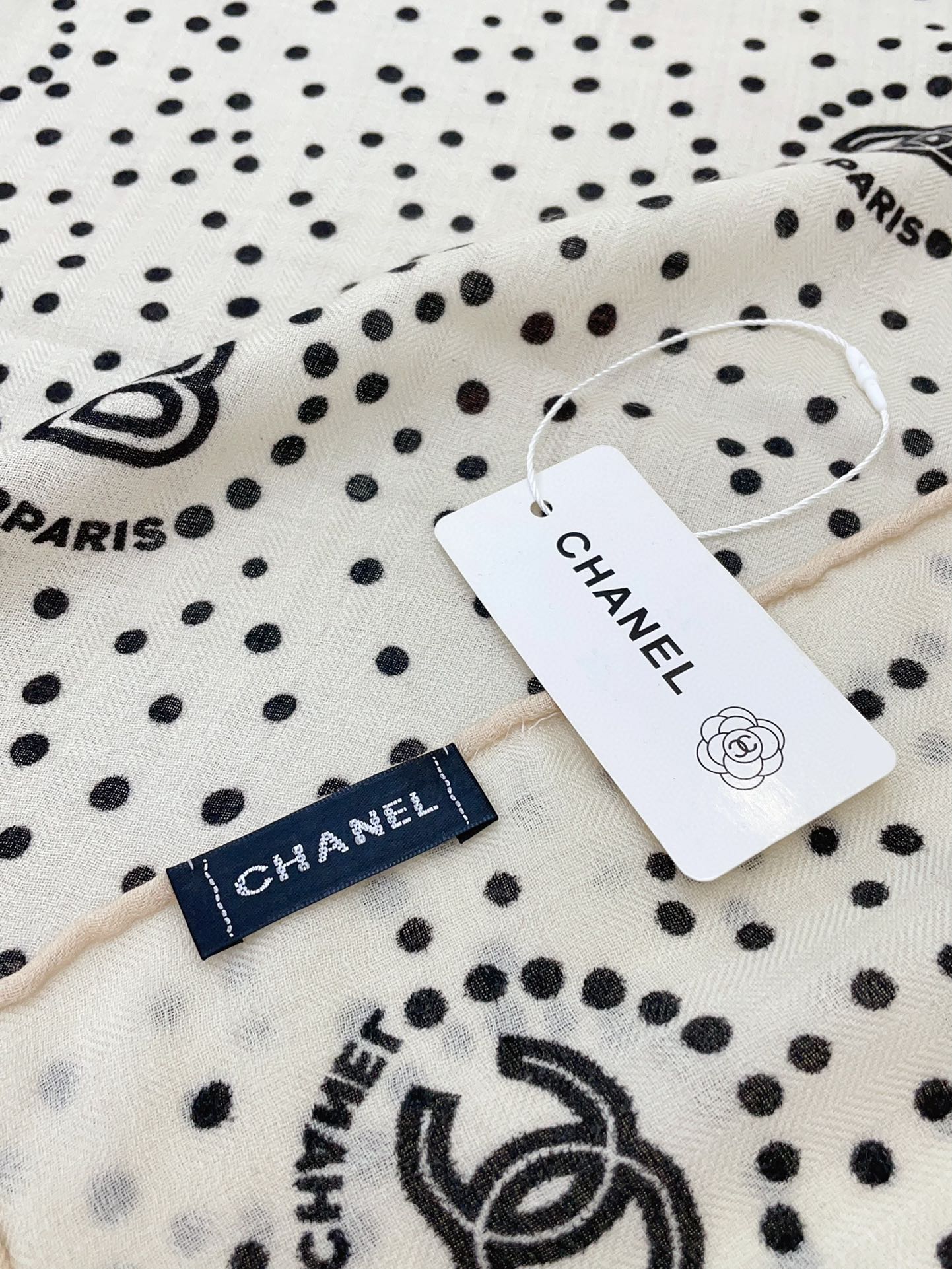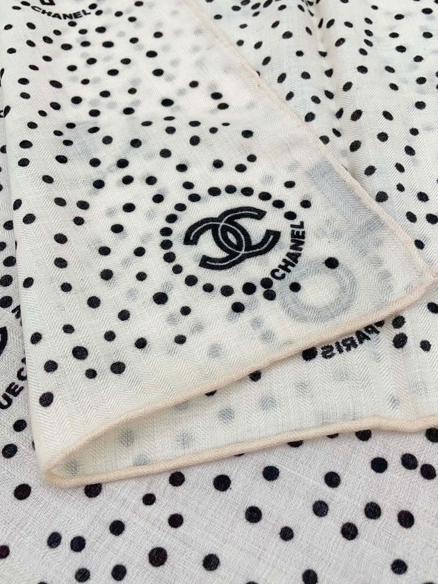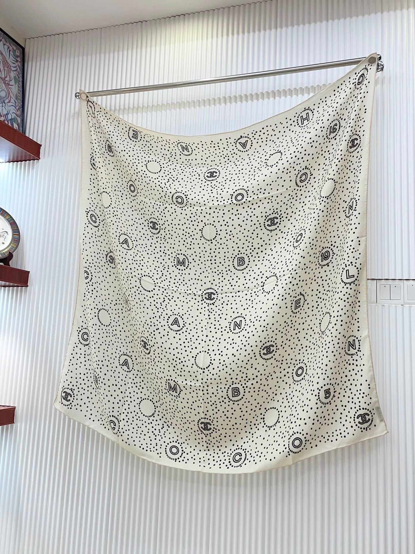 CC Square Scarf 140 CM In White Black Polka Dot Cashmere Silk 337146
