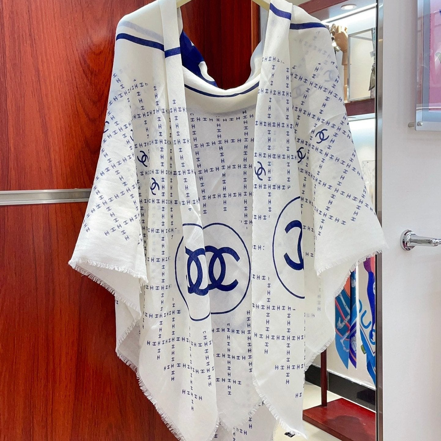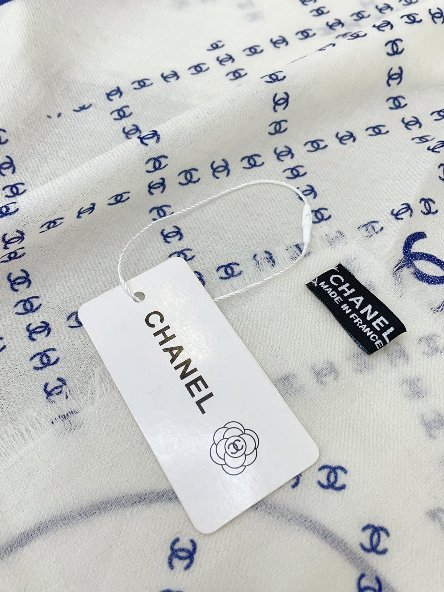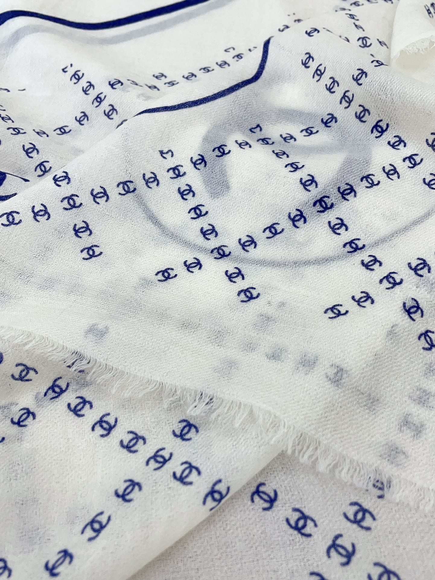 CC Square Scarf 140 CM In White With Blue Logo Cashmere 300442