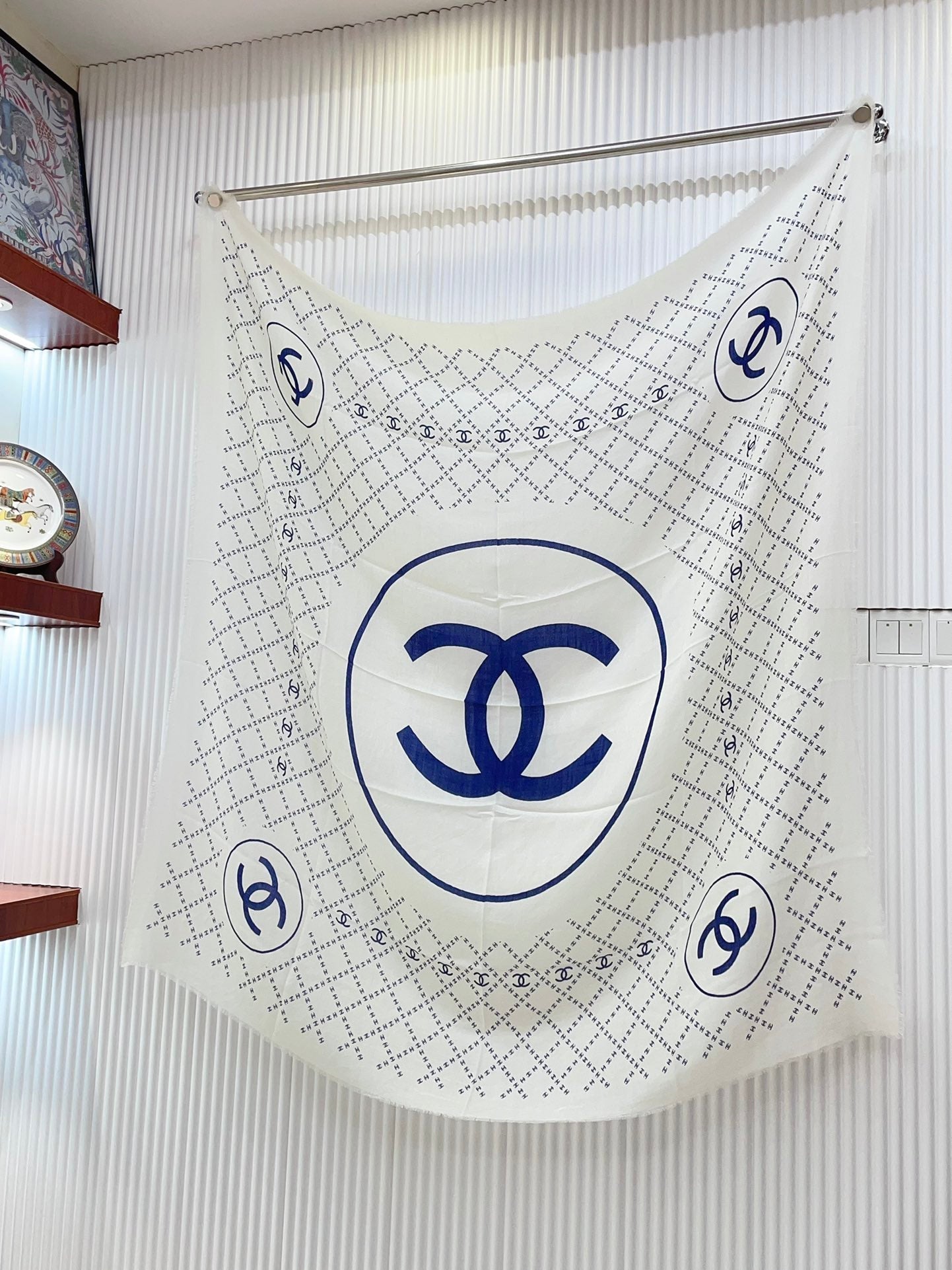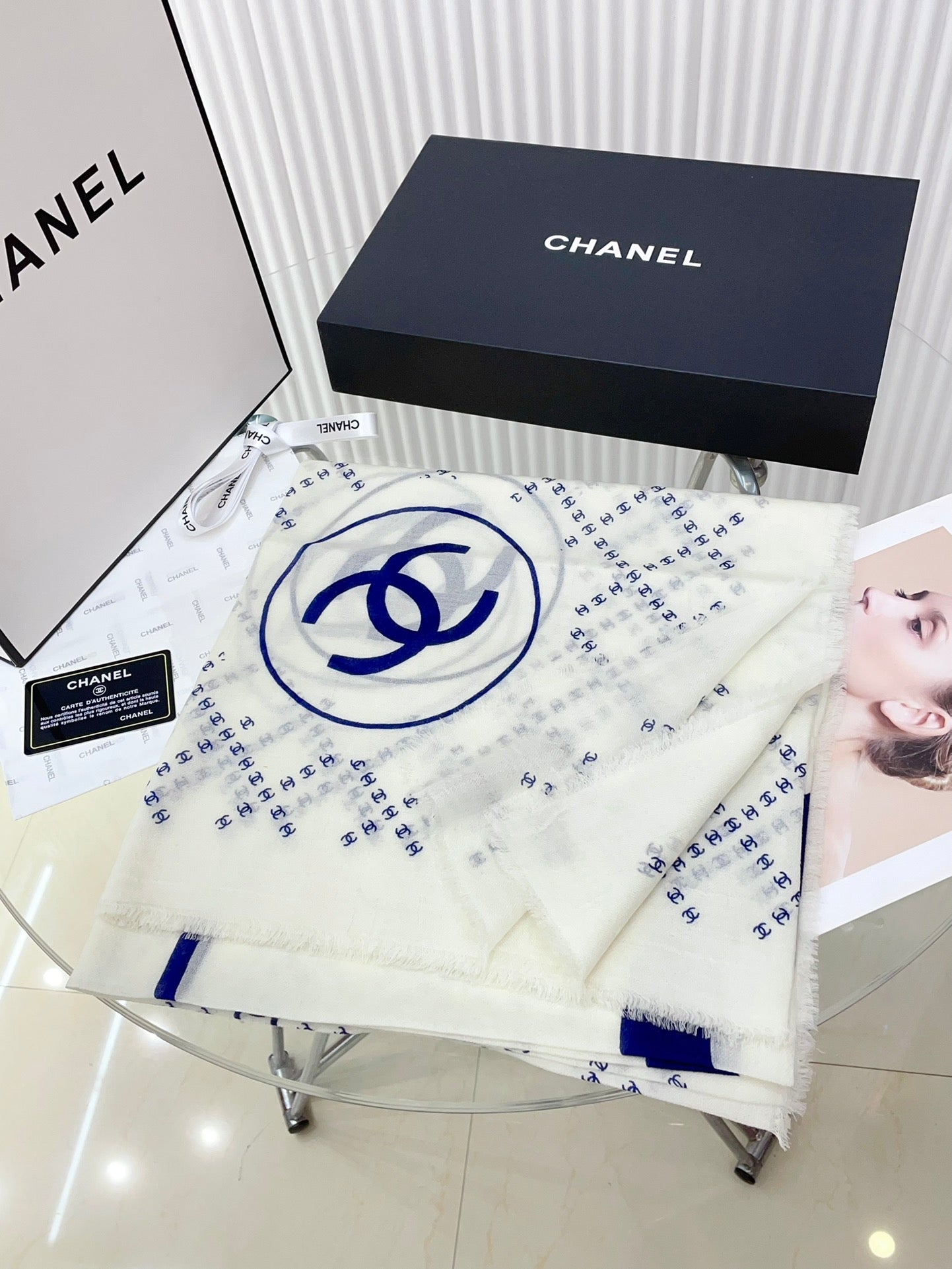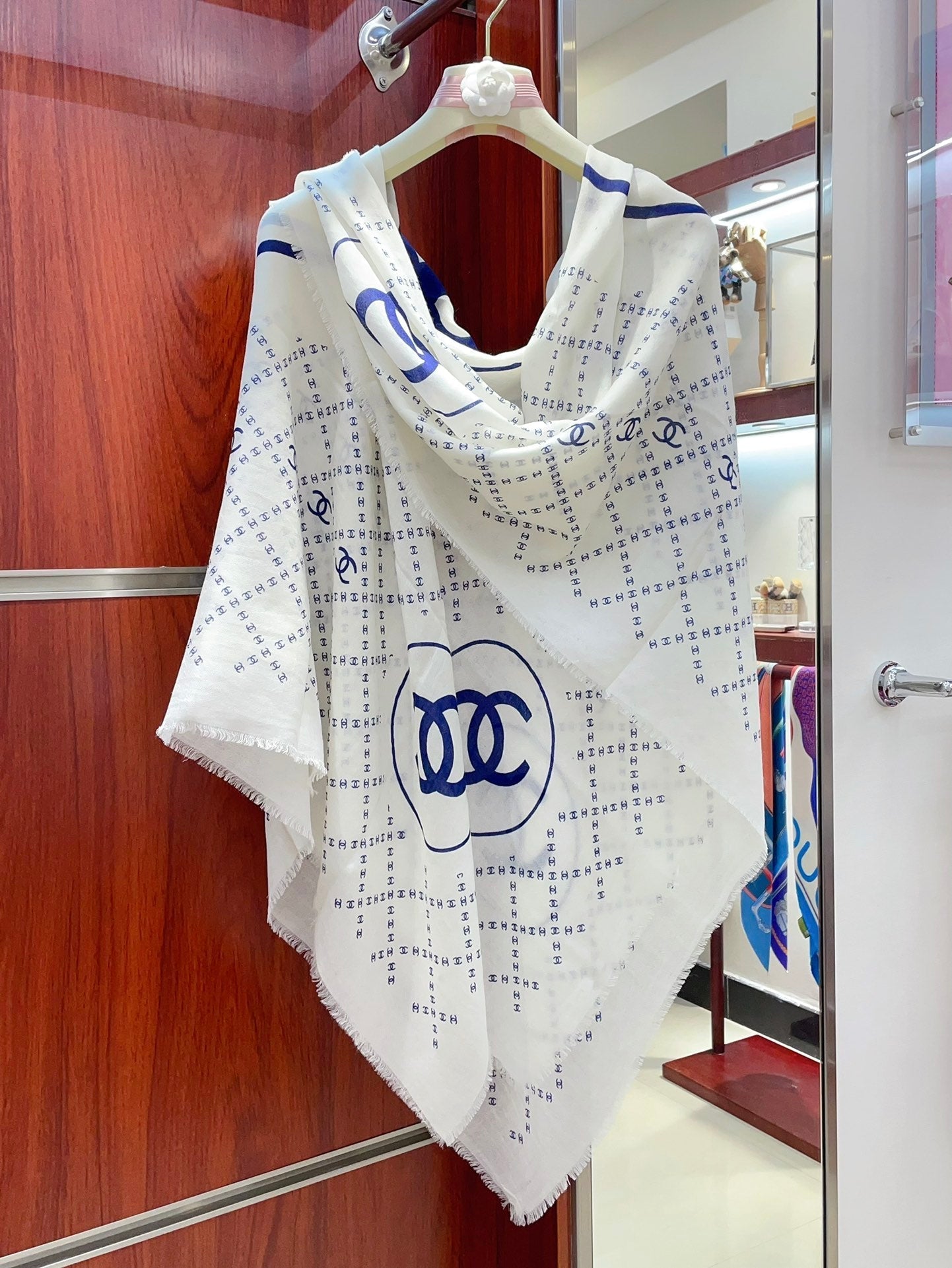 CC Square Scarf 140 CM In White With Blue Logo Cashmere 300442