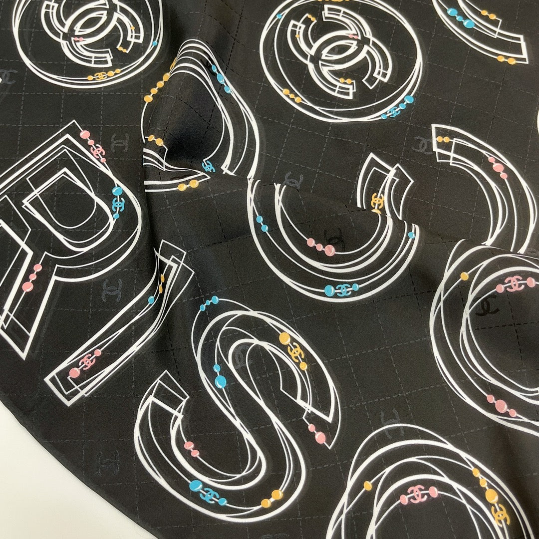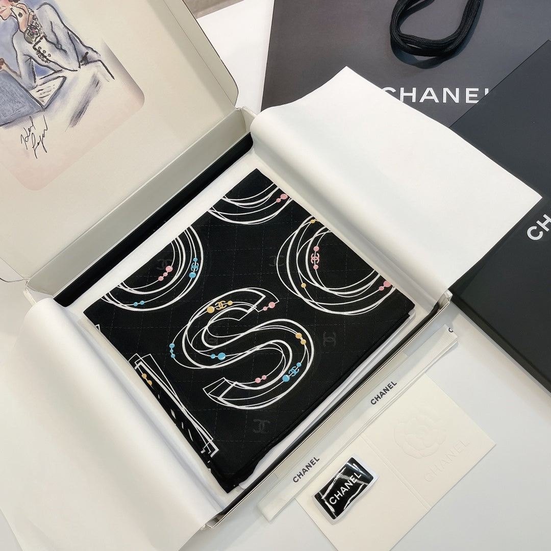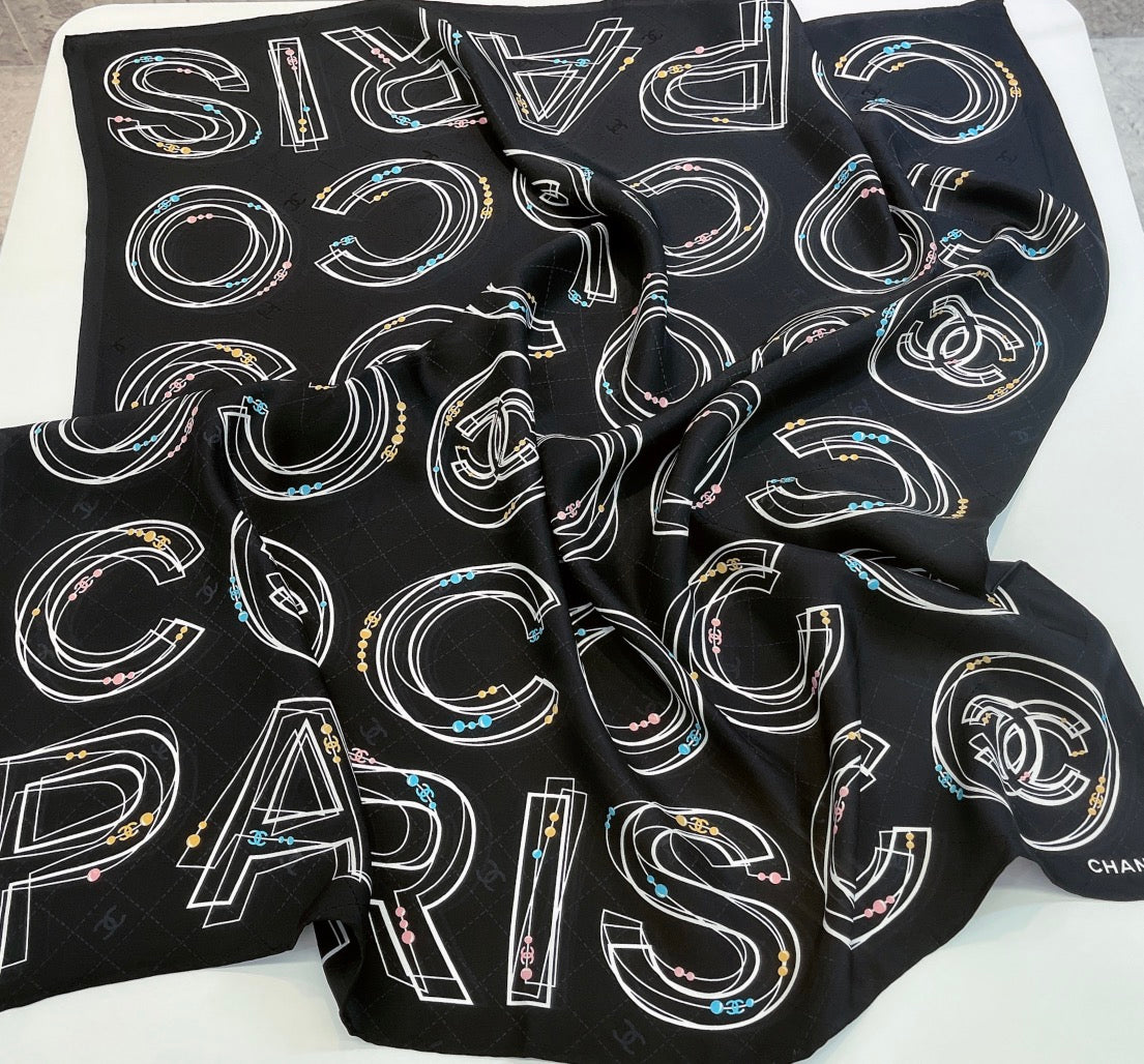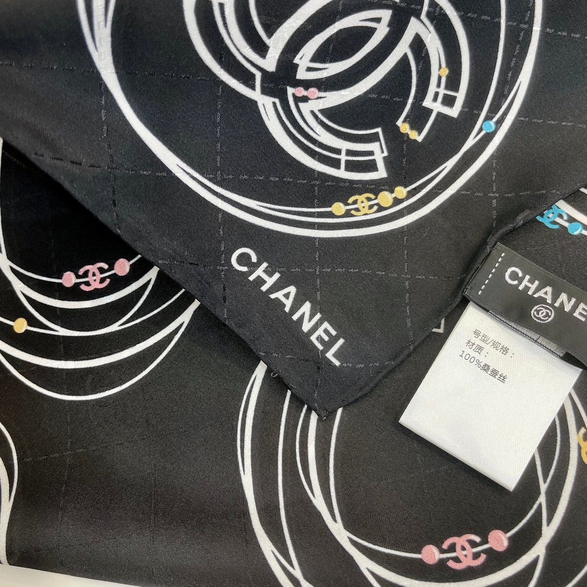 CC Square Scarf 90 CM In Black Mix White Silk 288720