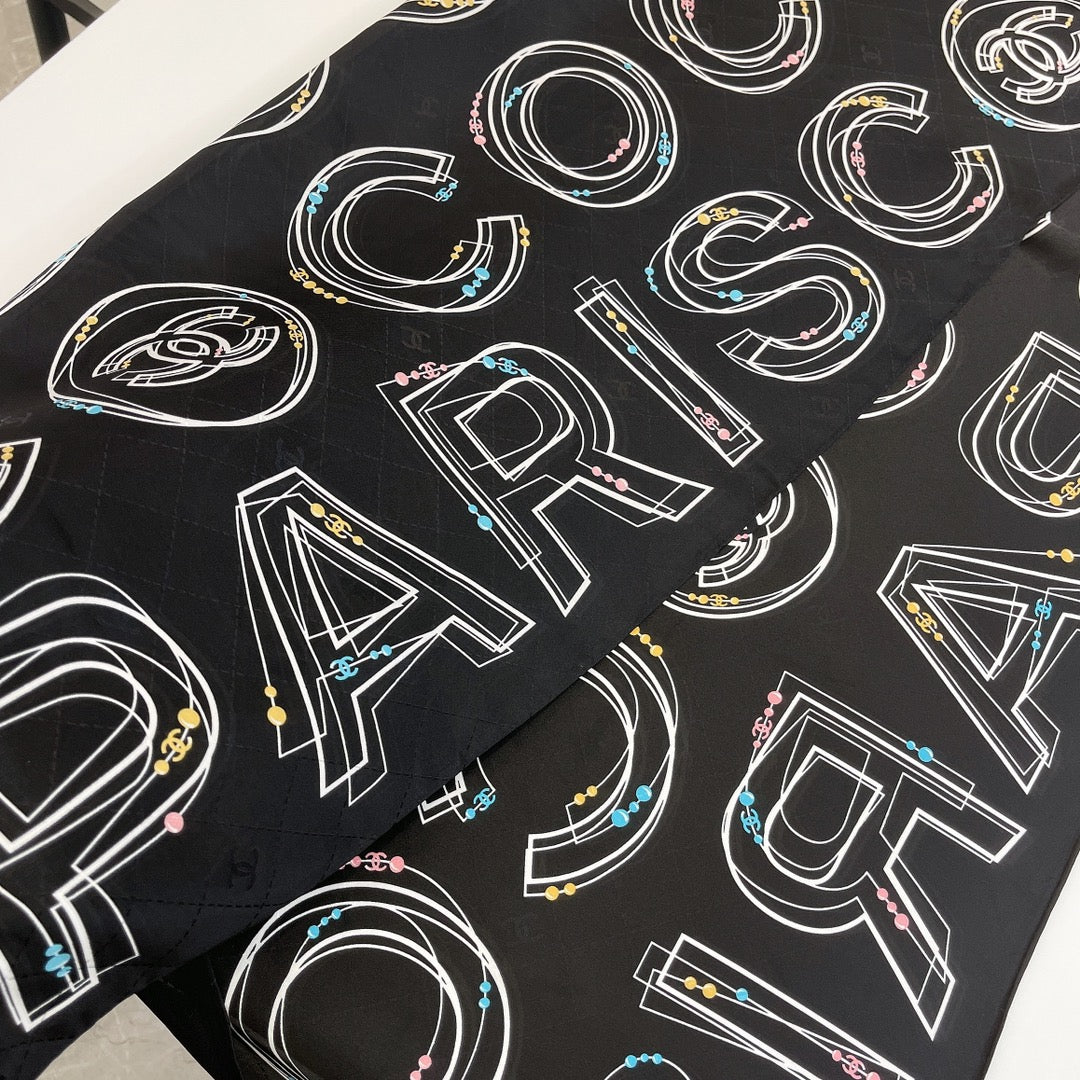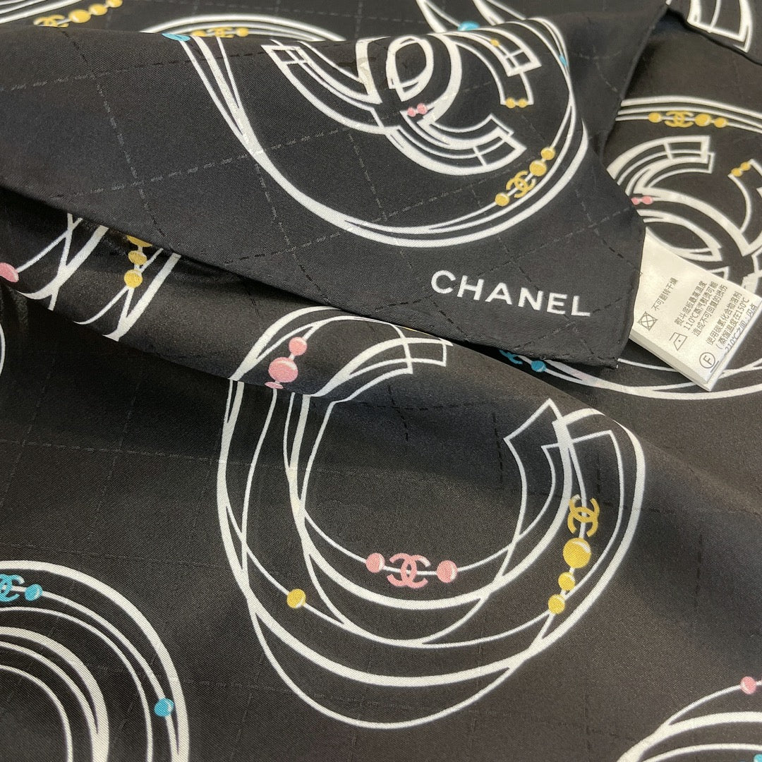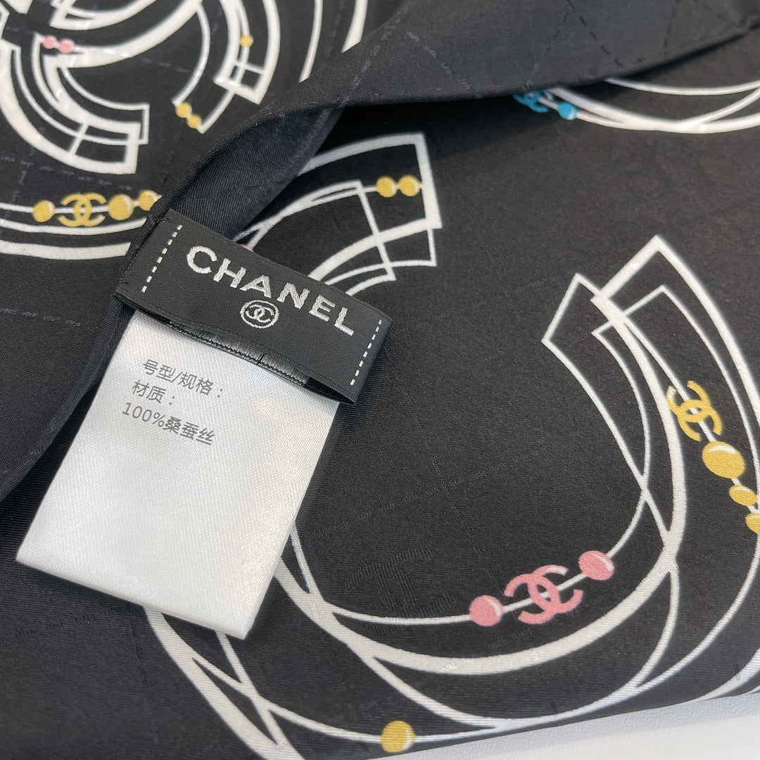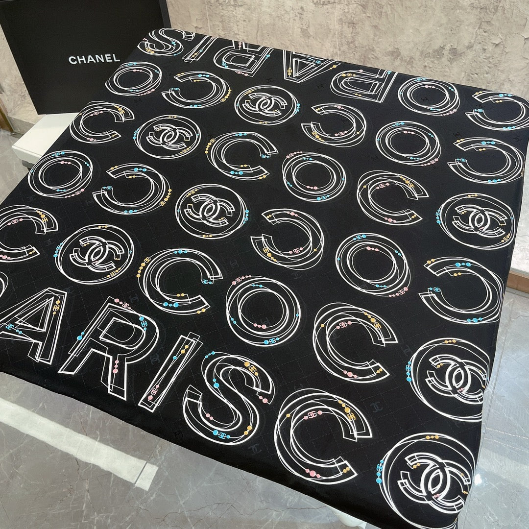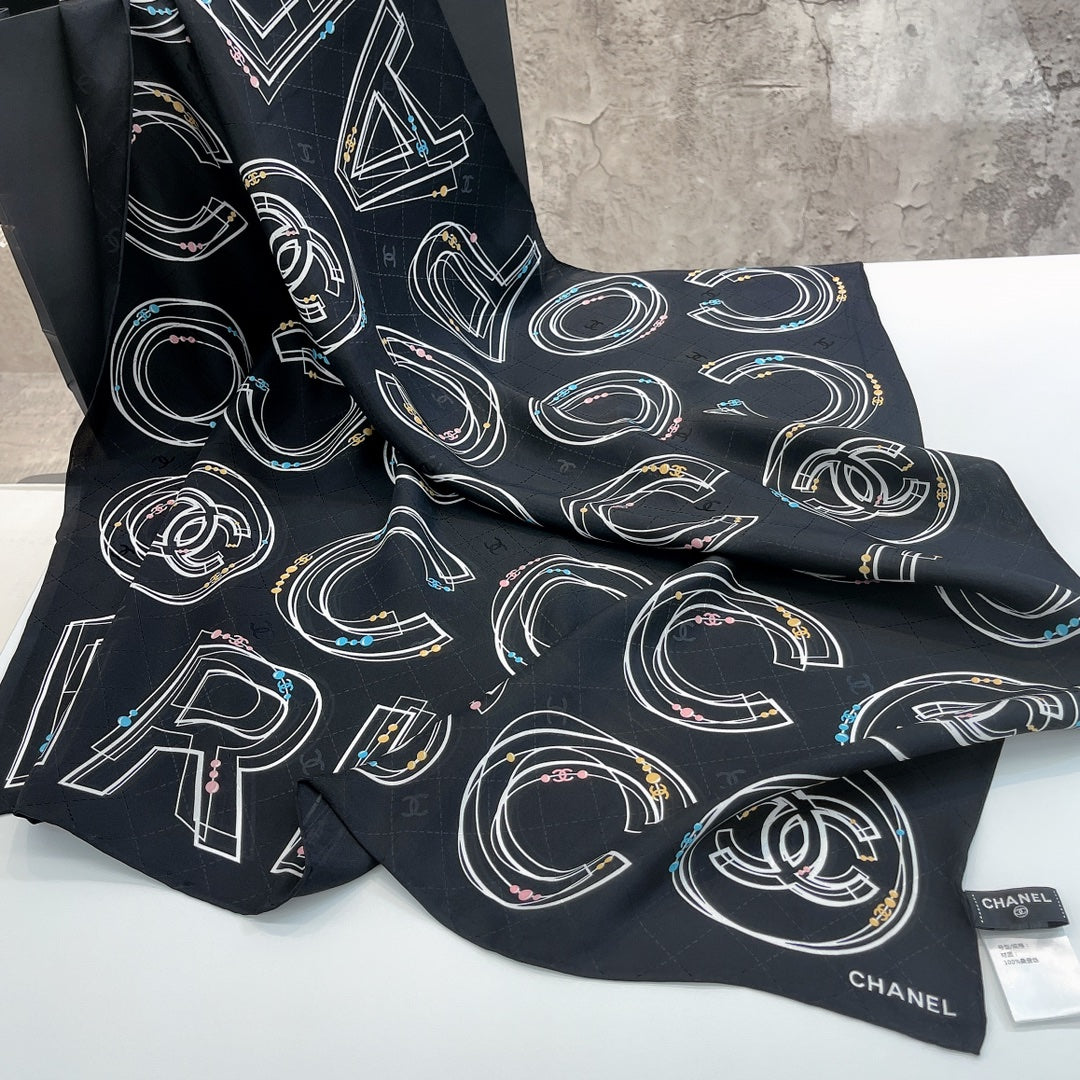 CC Square Scarf 90 CM In Black Mix White Silk 288720