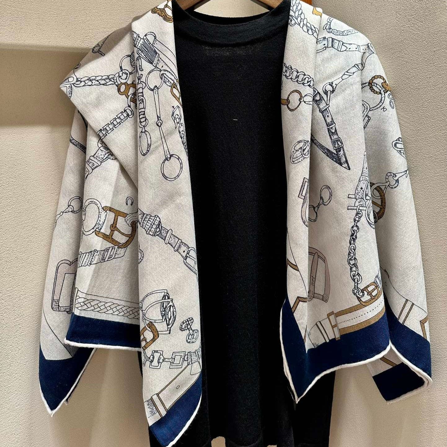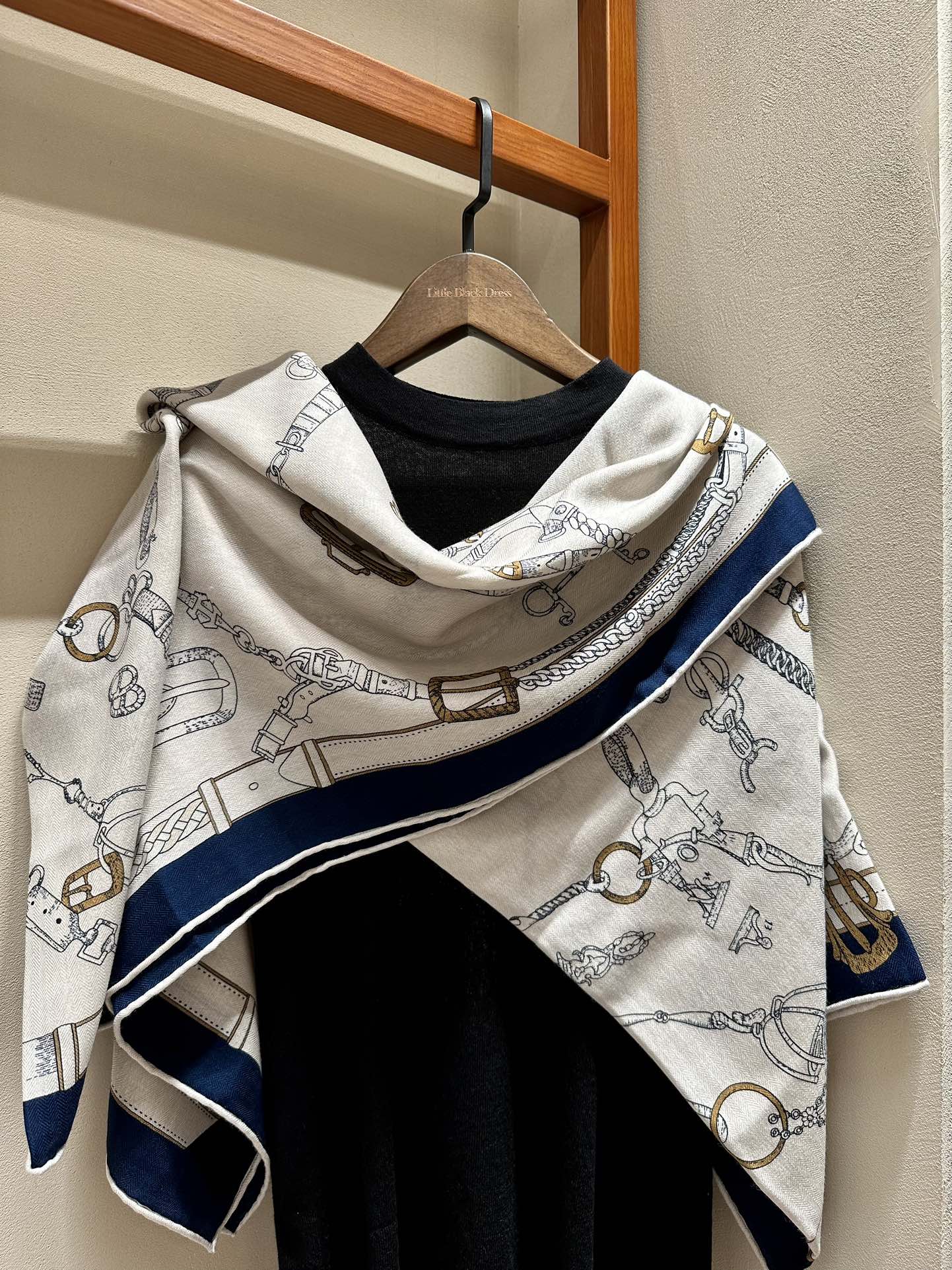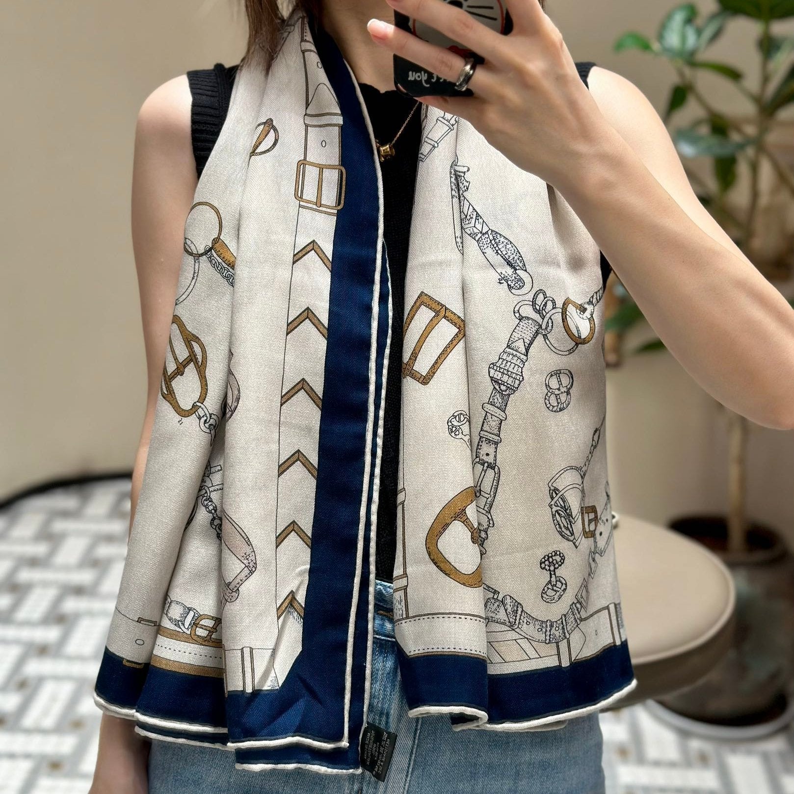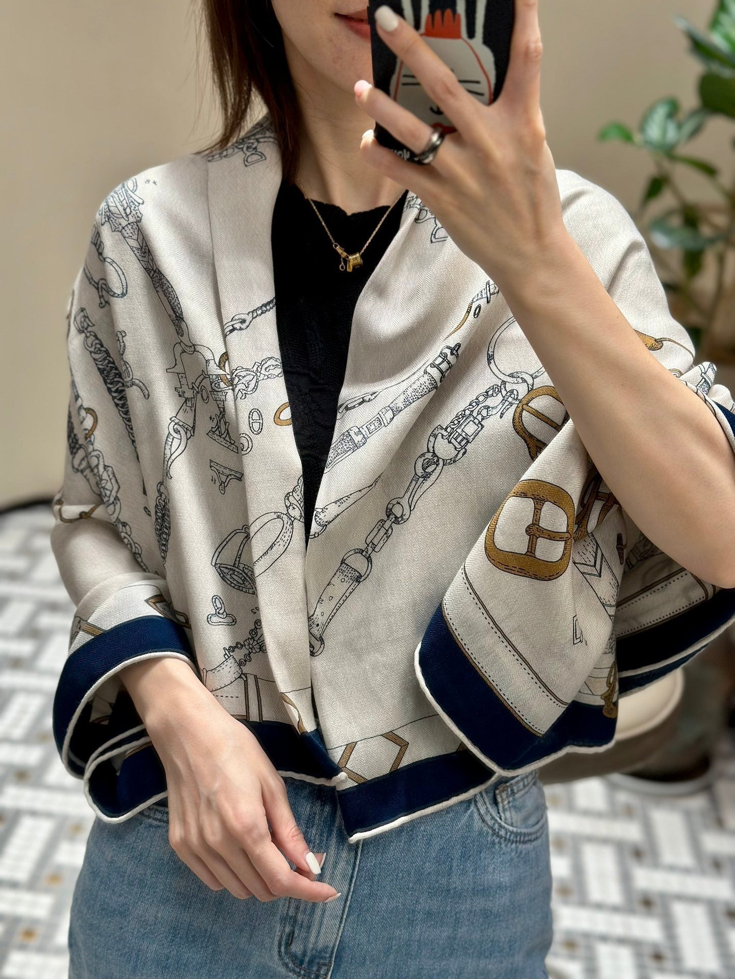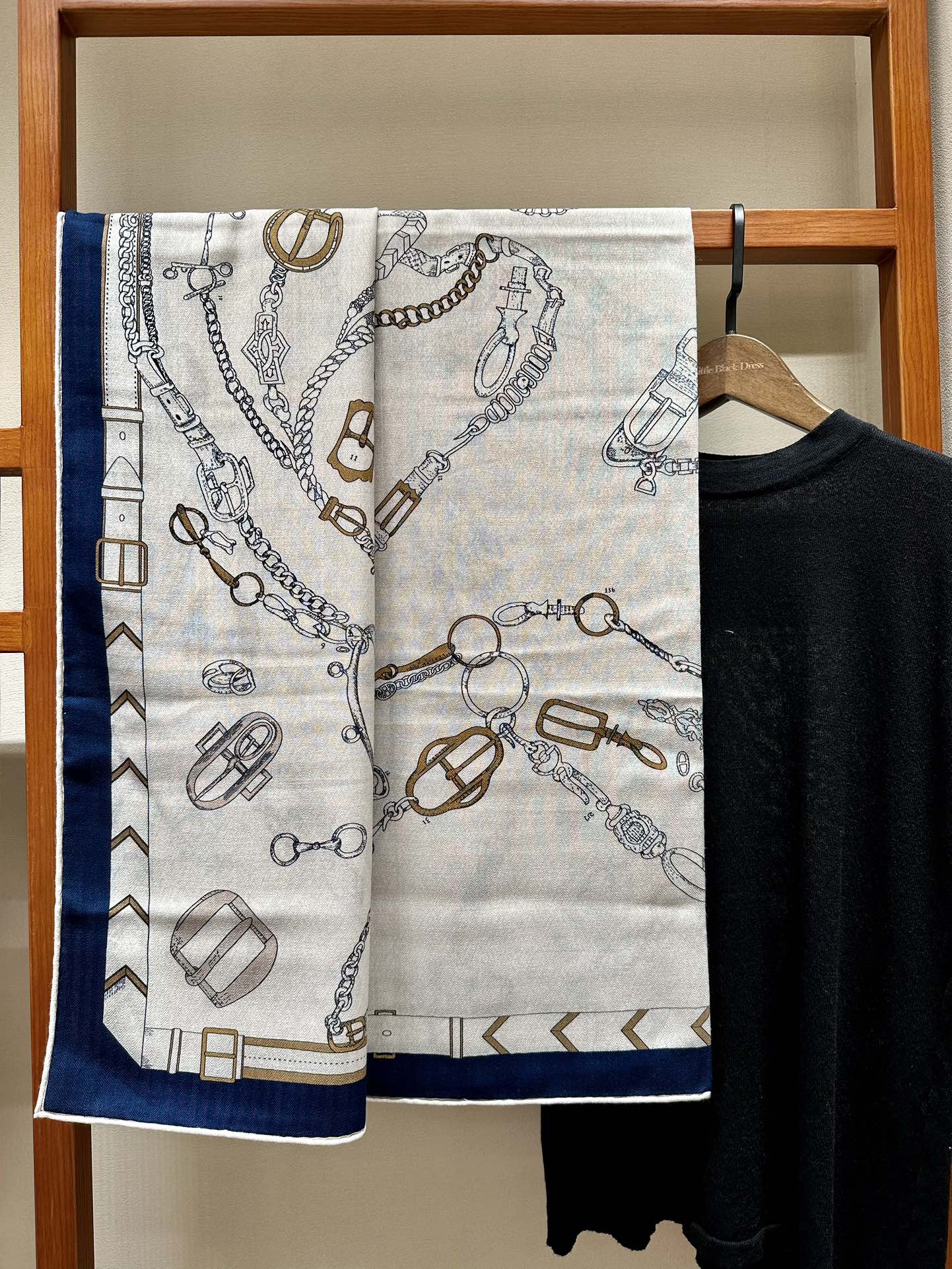 Chevaux Dechaines Shawl 135 CM IN Blue Purple Colorful Cashmere Silk 373687