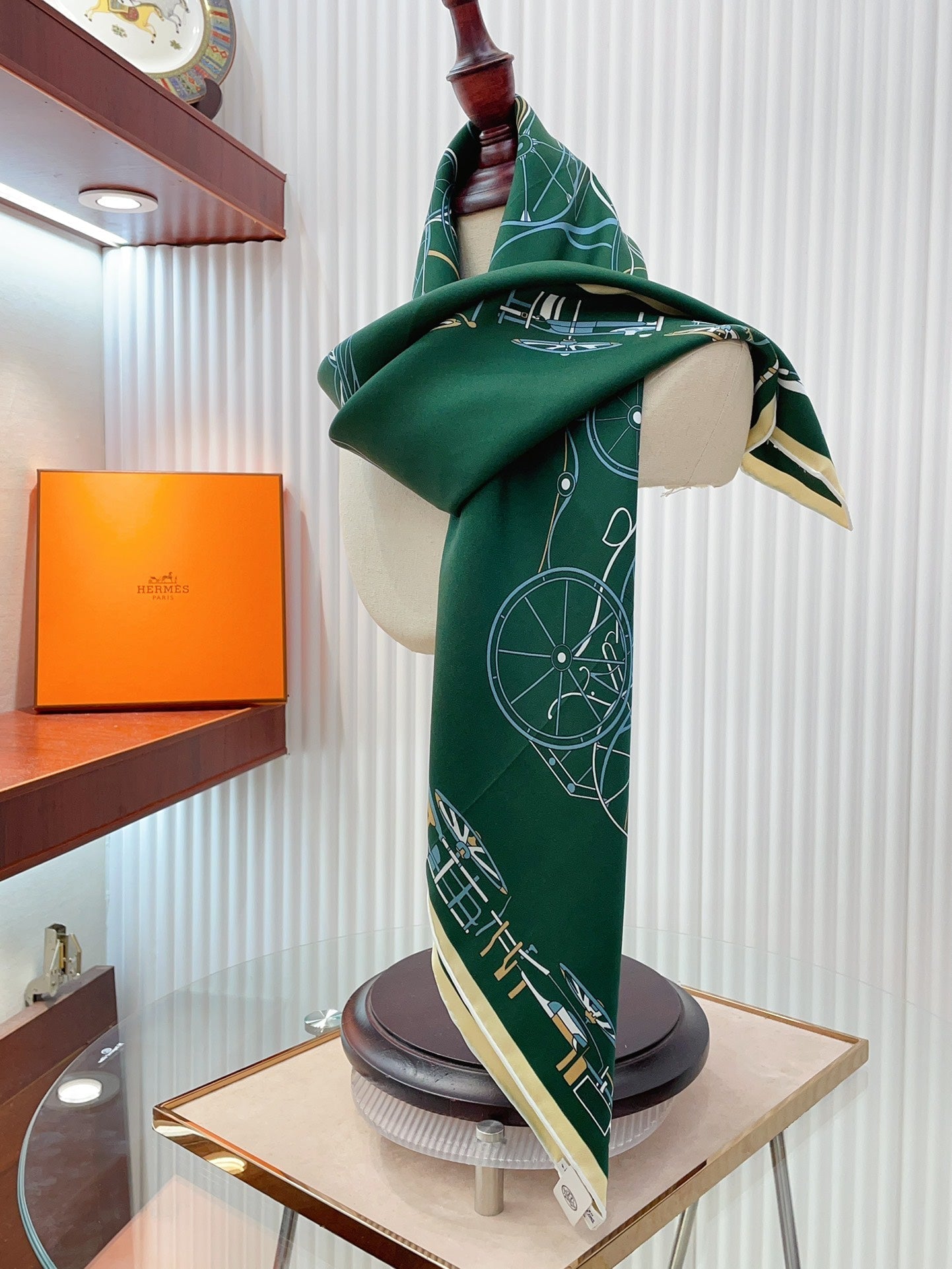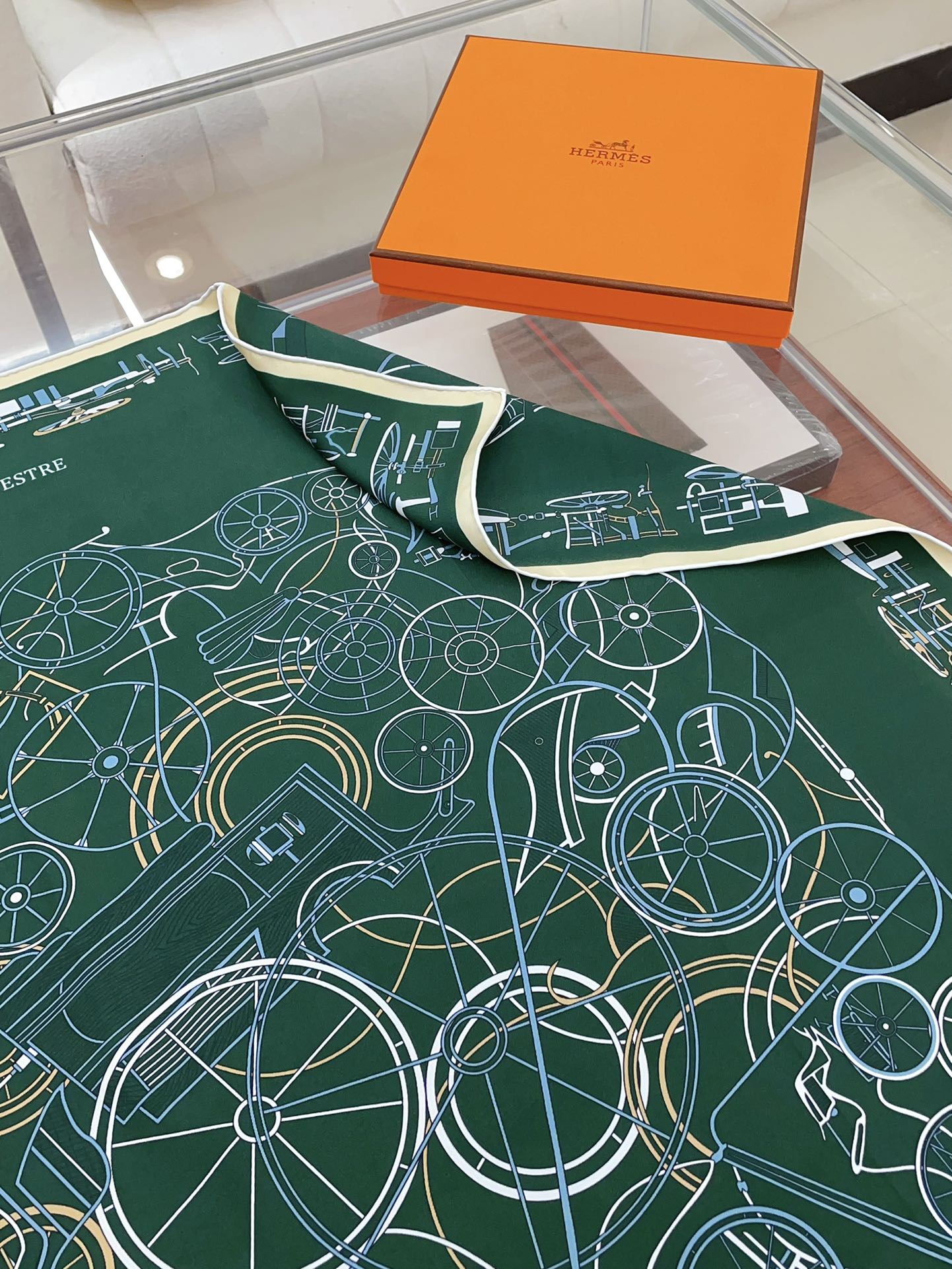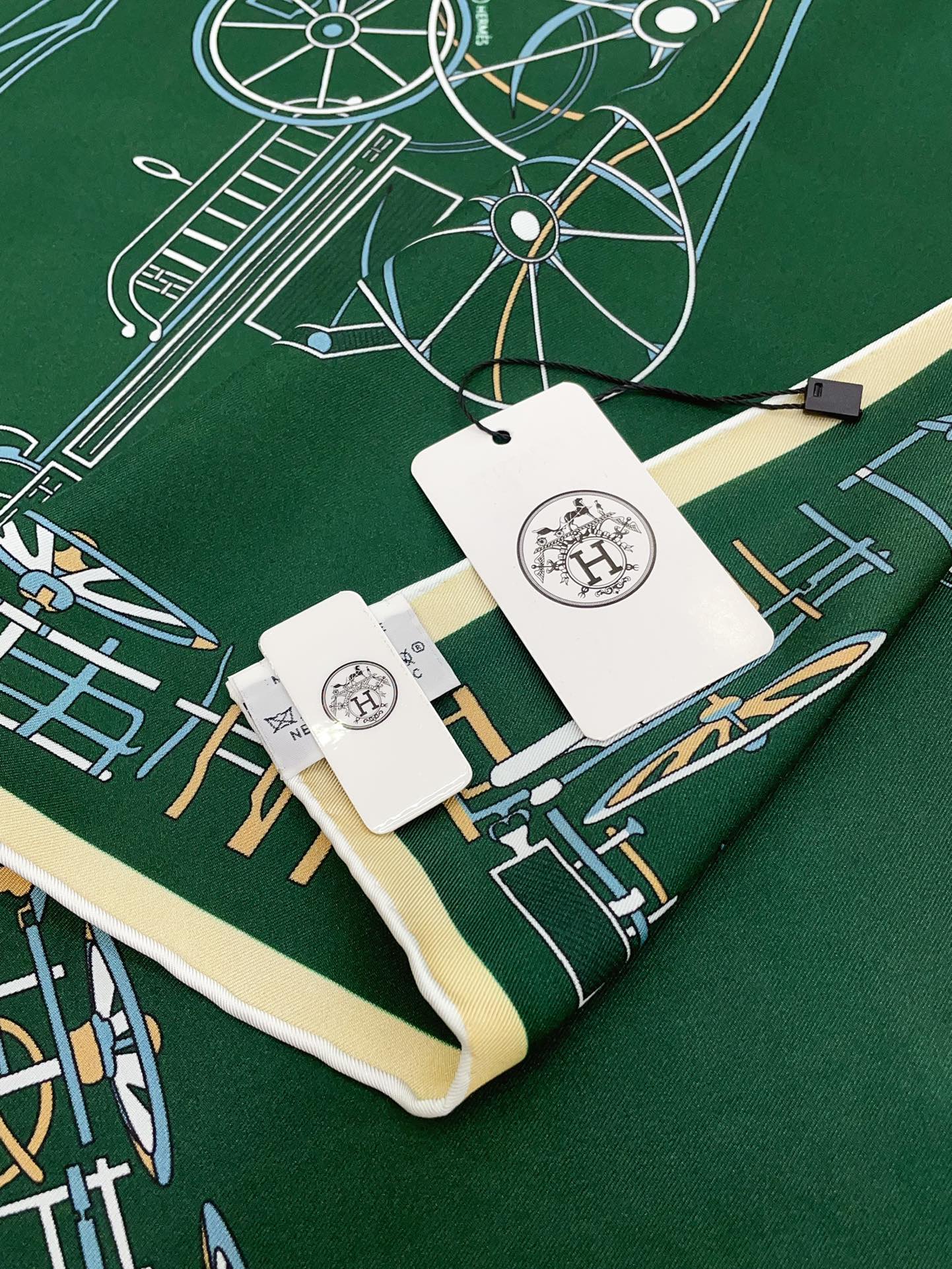 Complication Equestre Scarf 90 CM In Green Coloful Silk Twill 345899