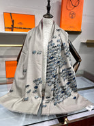 Hermes velvet scarf 185 CM Rice Gray Cotton Fabric