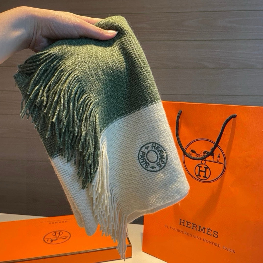 KNIT SCARF 180 IN JADE GREEN MIX WHITE CASHMERE