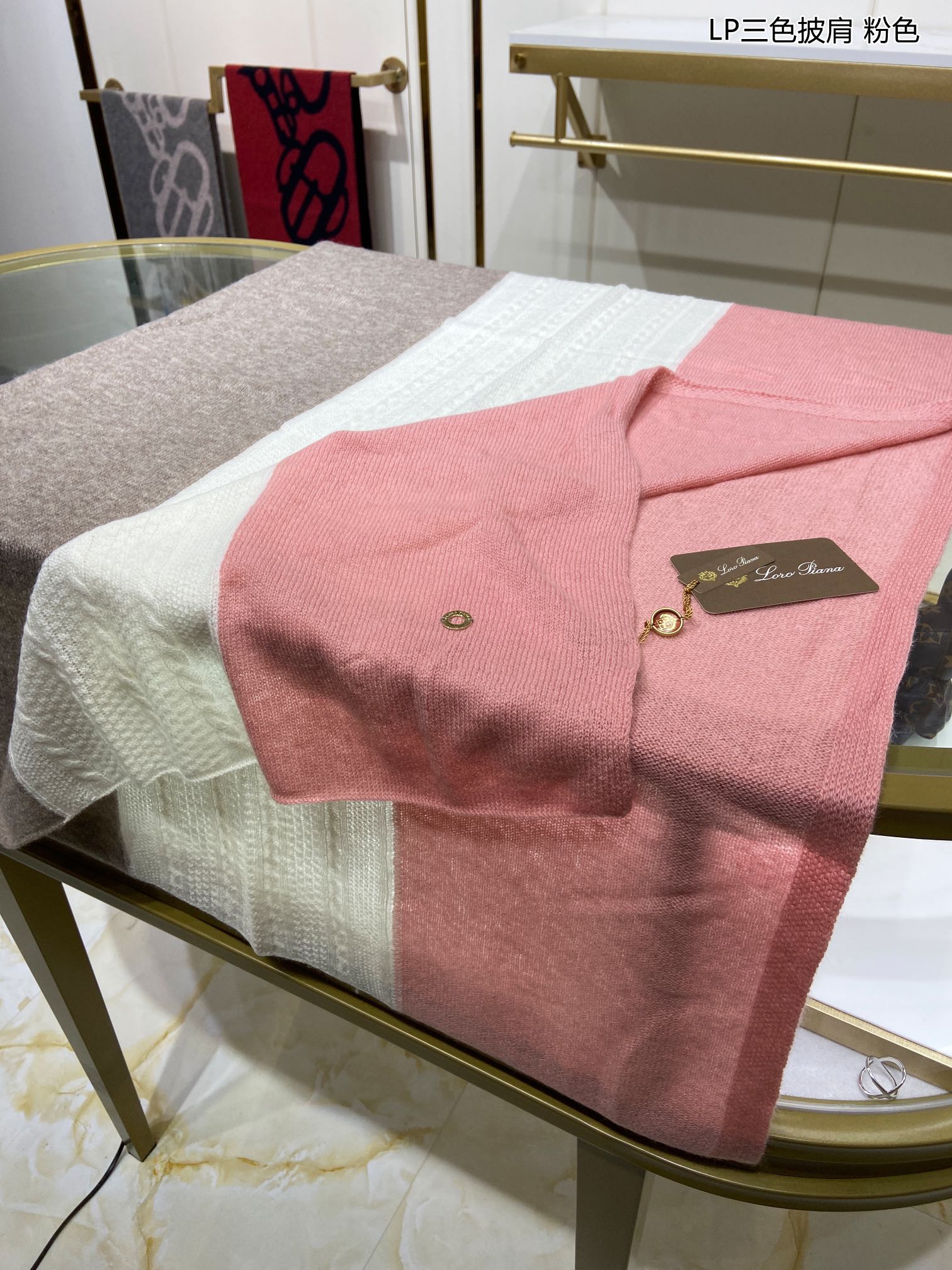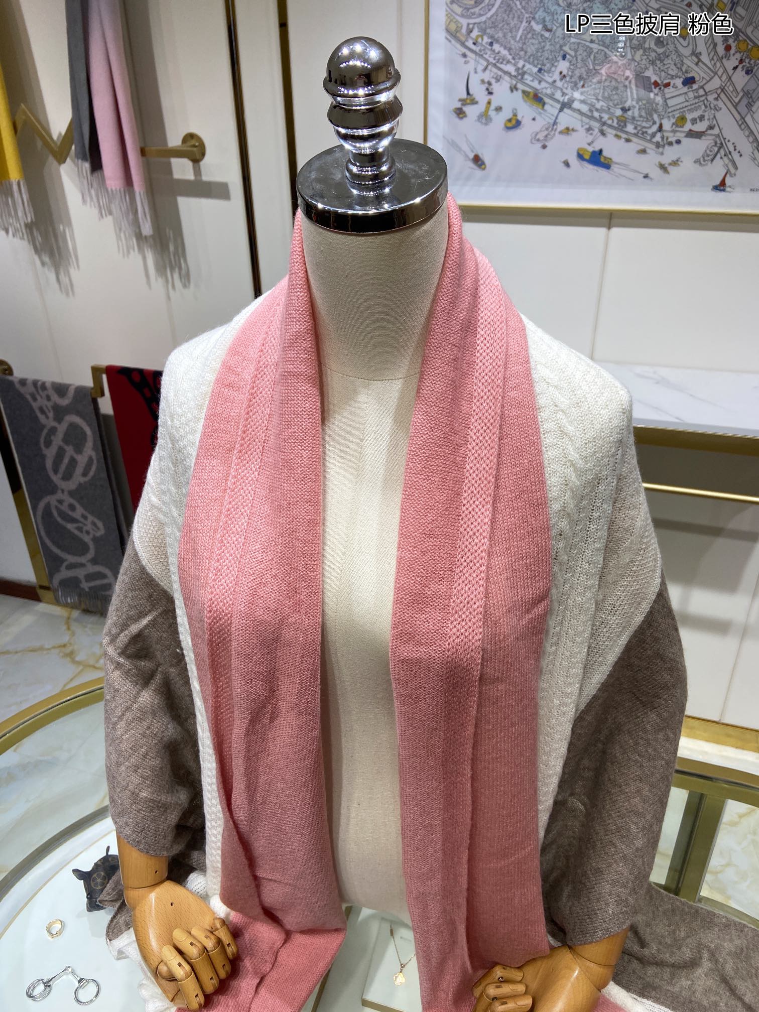 LP Scarf 190 CM In Pink Mix White Earth Brown Cashmere 649678