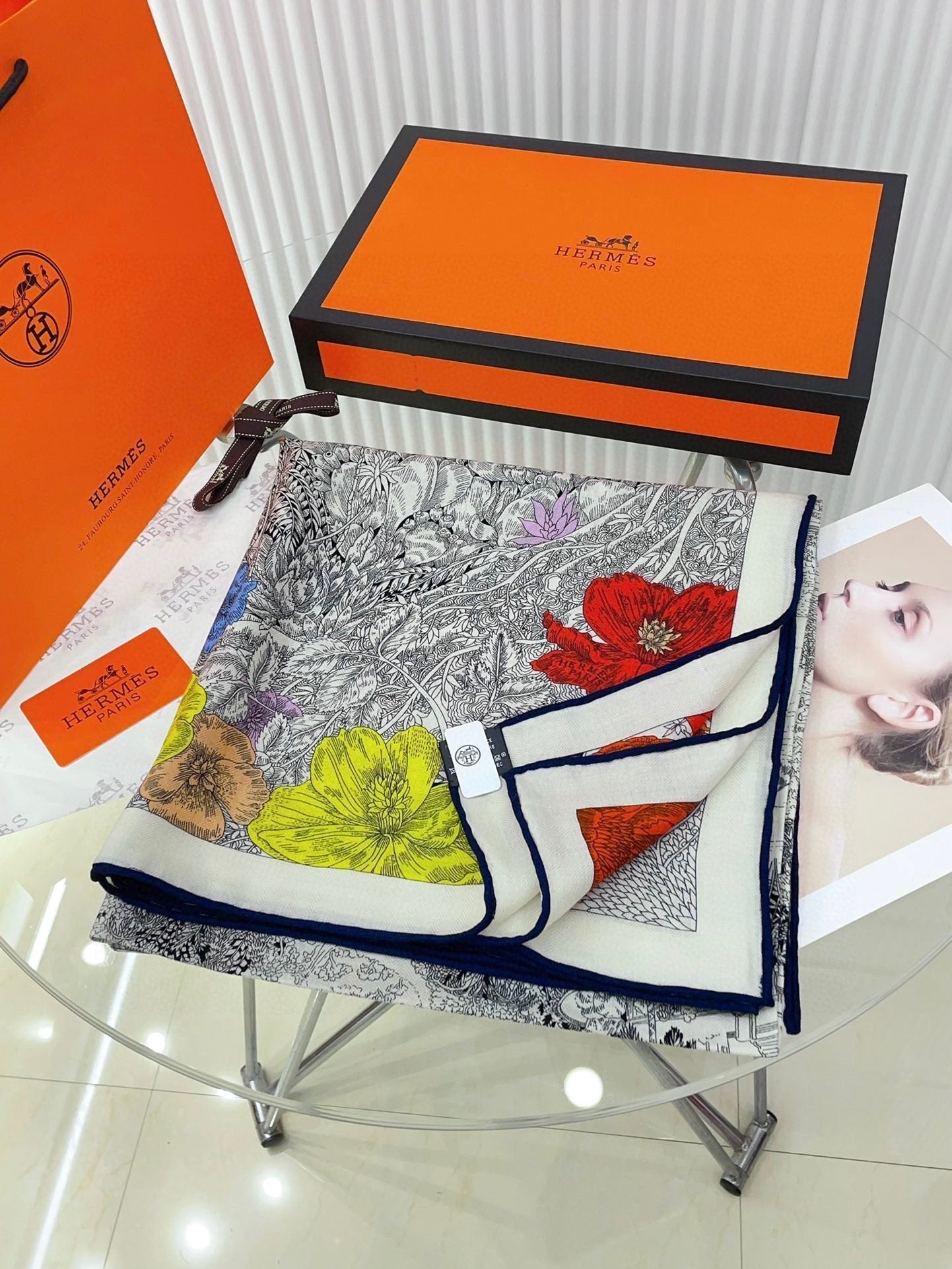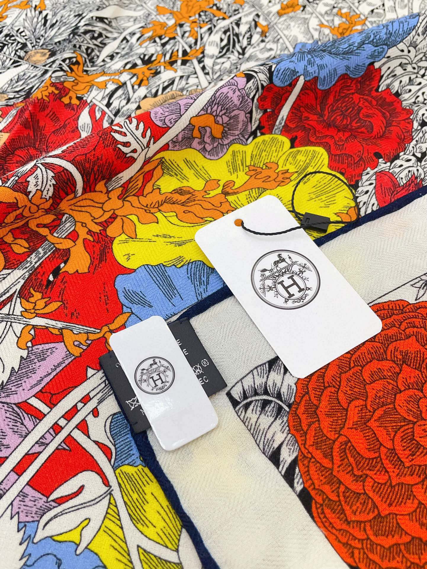 Retour A La Nature Shawl 140CM In Grey White Colorful Cashmere And Silk
