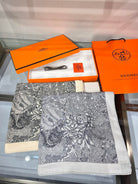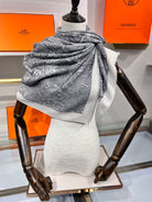 Scarf 135 CM Grey White Cashmere And Silk
