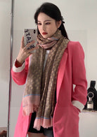 SCARF 200 CM IN KHAKI BROWN MIX LIGHT PINK CASHMERE 405265