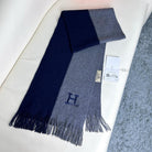 SCARF 180 CM IN NAVY BLUE MIX GREY CASHMERE WITH EMBROIDERED LOGO