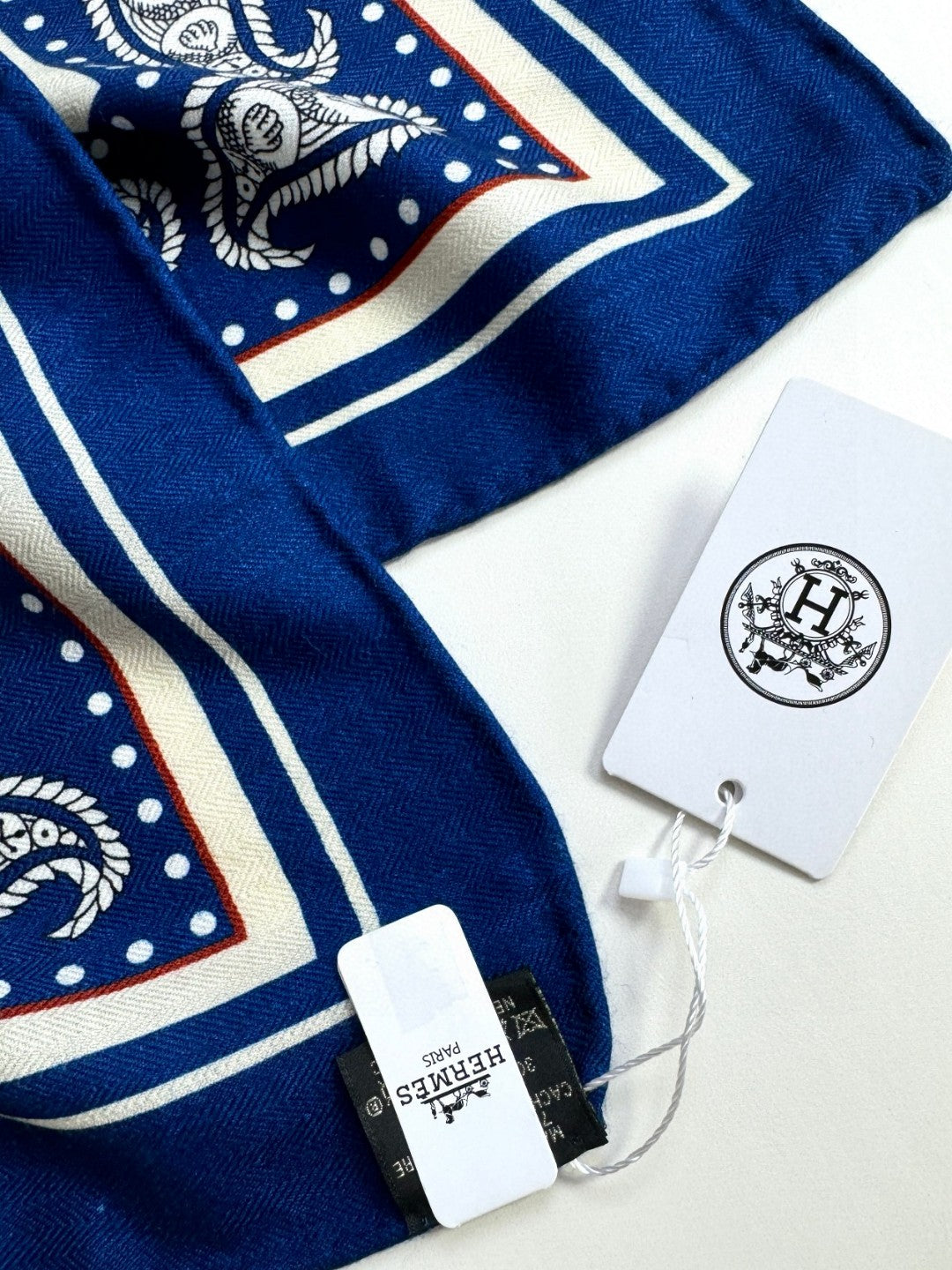 Tatouages Marins Bandana Shawl 135 CM Dark Blue Mix White Red Cashmere And Silk 401090