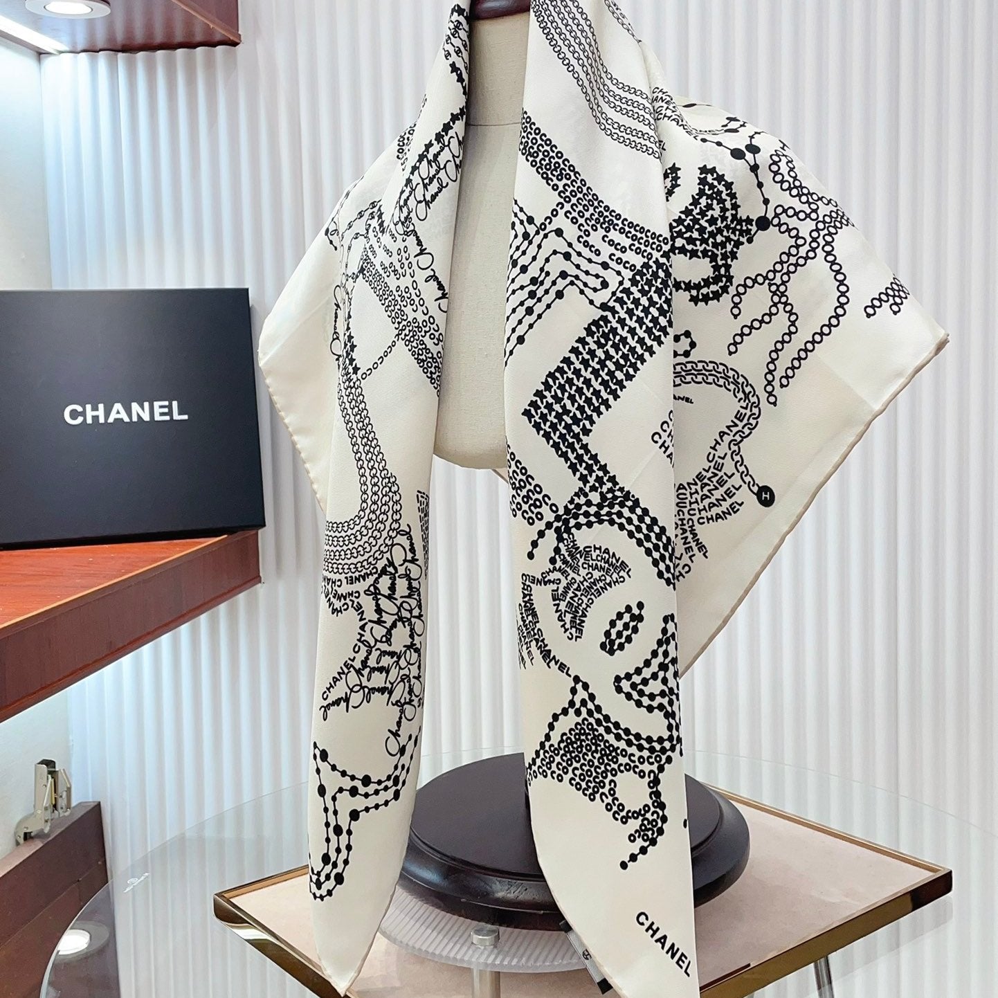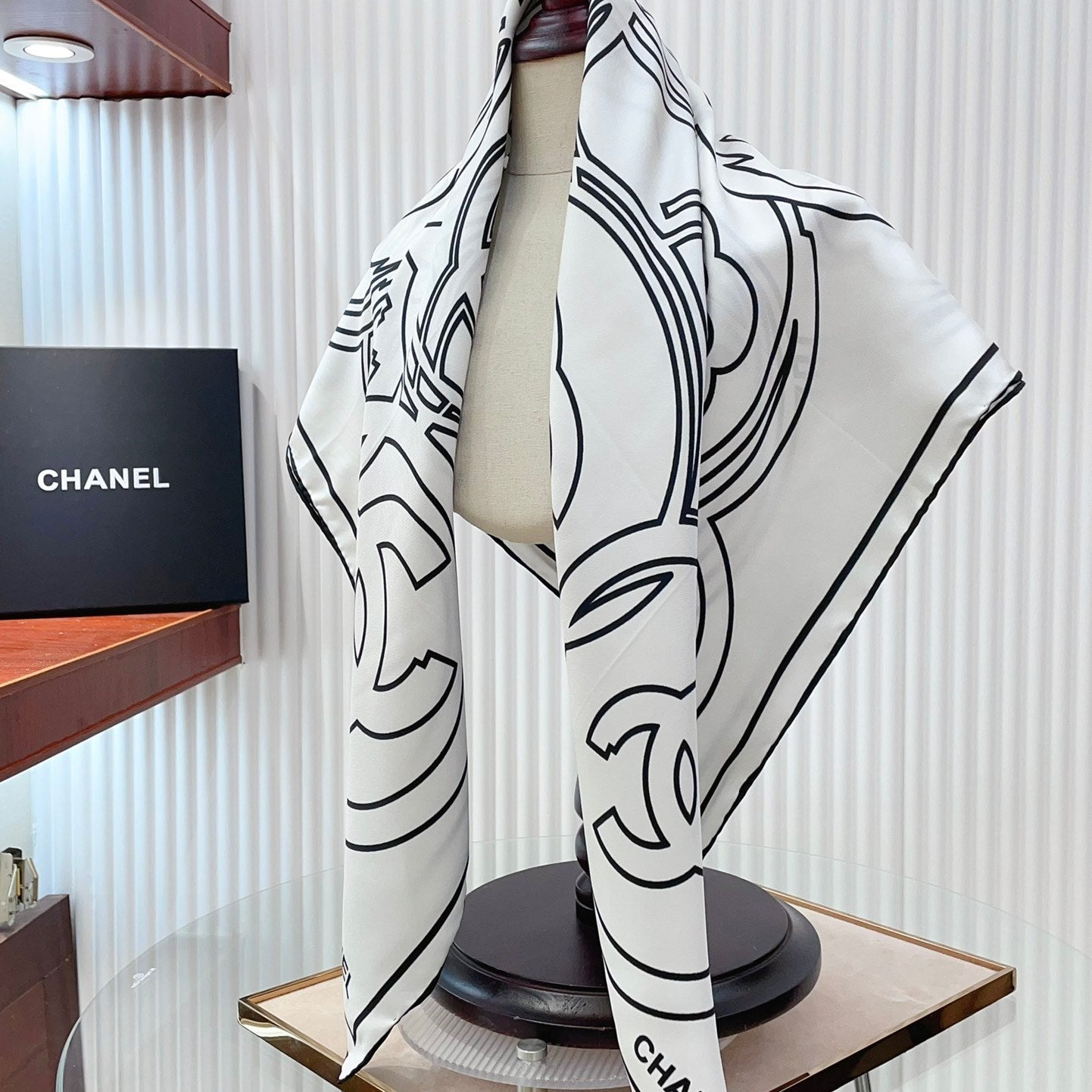 CC Square Scarf 110 CM In White Black Shunyu Qiao Silk 193840