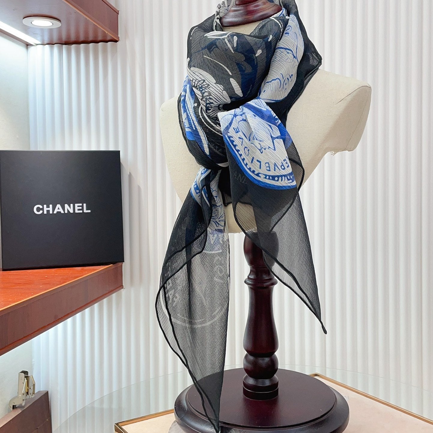 CC Scarf 190 CM In Black And White Floral Print Cashmere Silk 208542