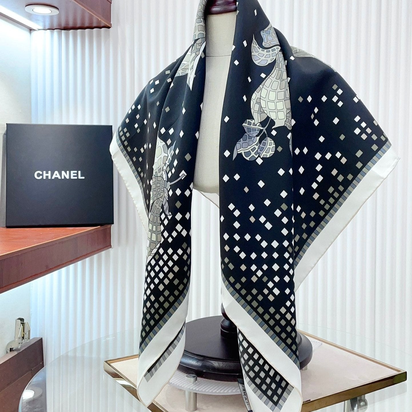CC Square Scarf 90 CM In Black Mix White Silk Twill 218098