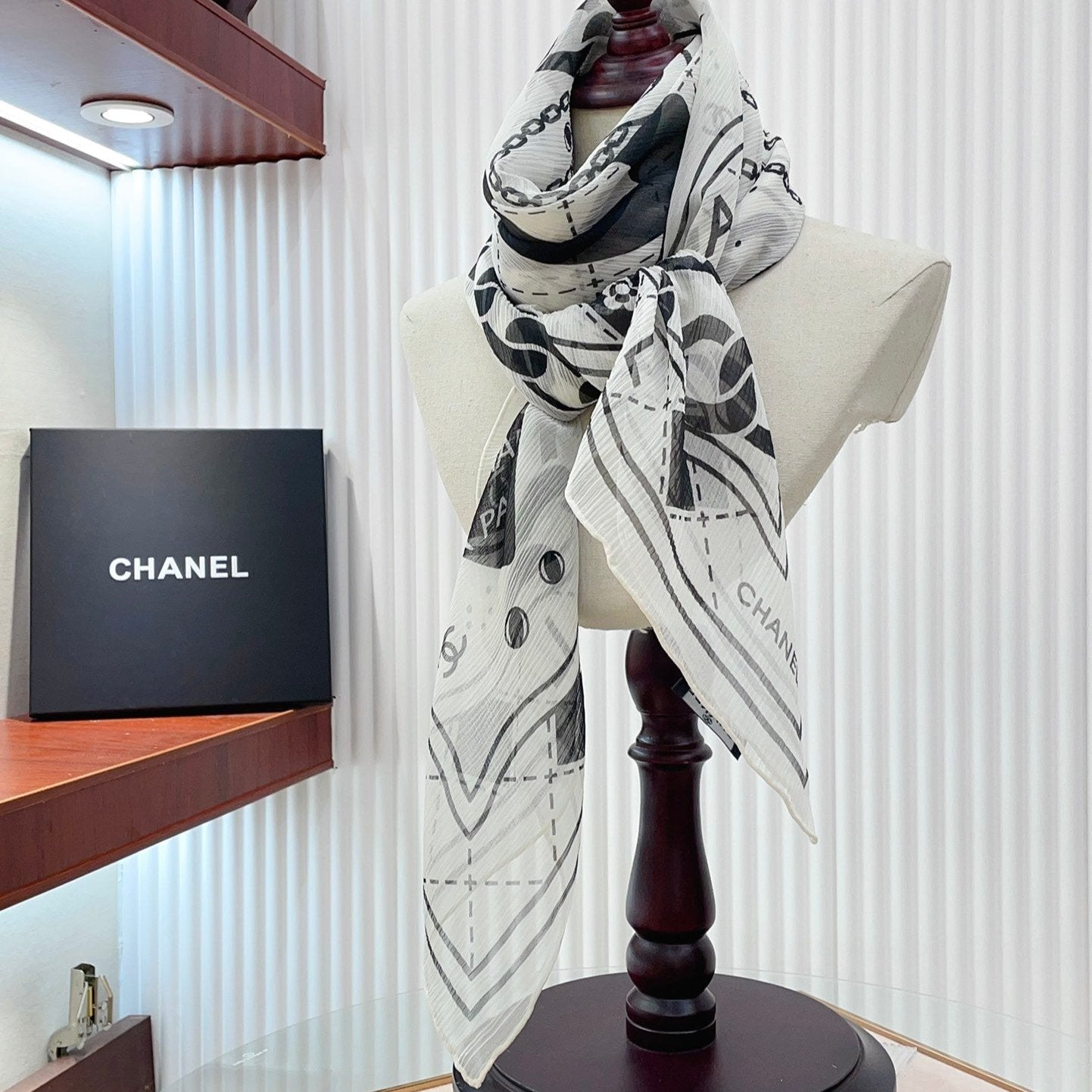 CC Square Scarf 110 CM In White Black Shunyu Georgette Silk 196210