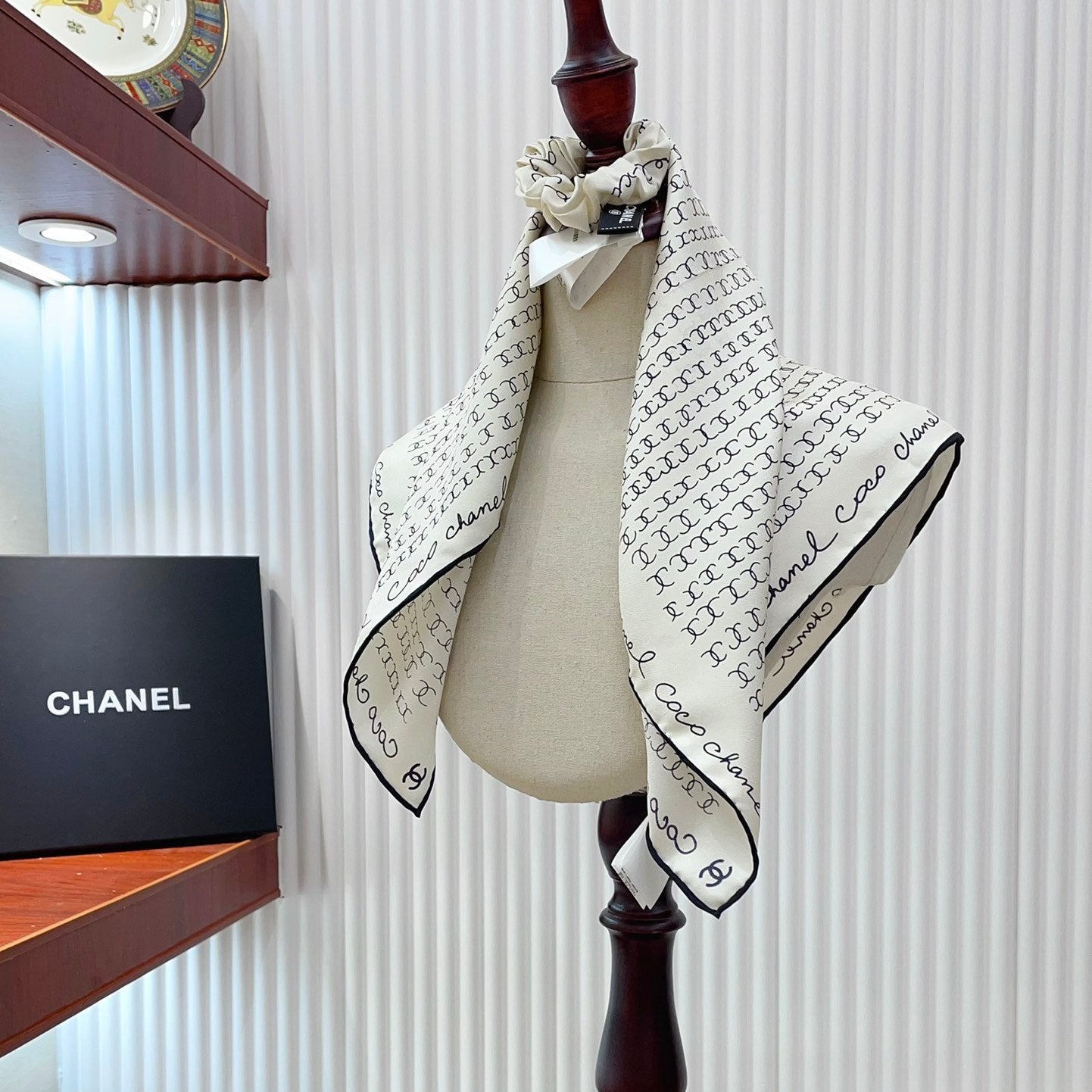 CC Square Scarf 90 CM In Beige Multi-Pattern Silk Twill 231847