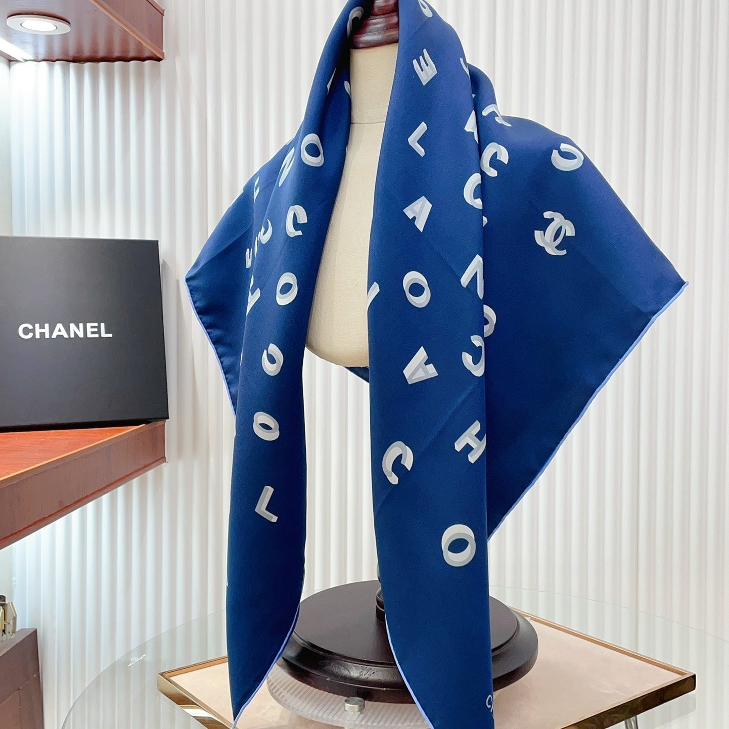 CC Square Scarf 90 CM In Blue With Printed Letters Silk Twill 208581