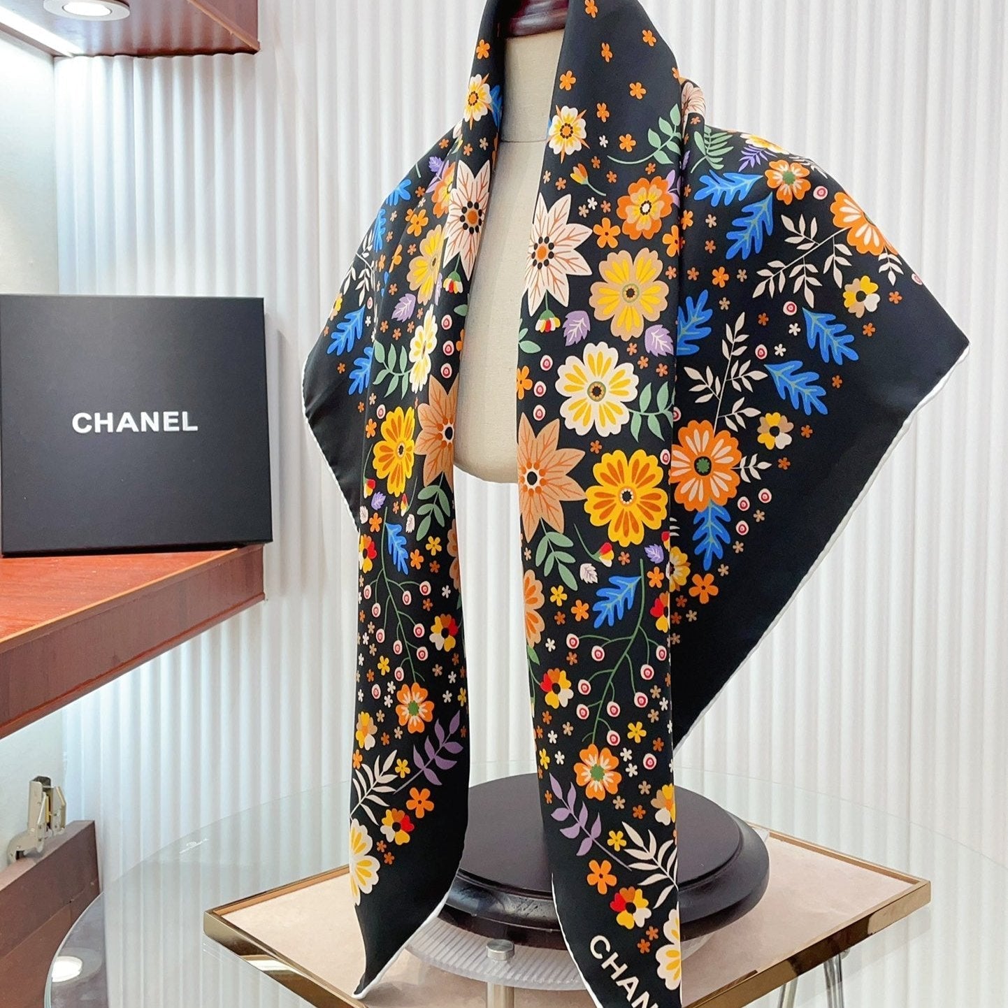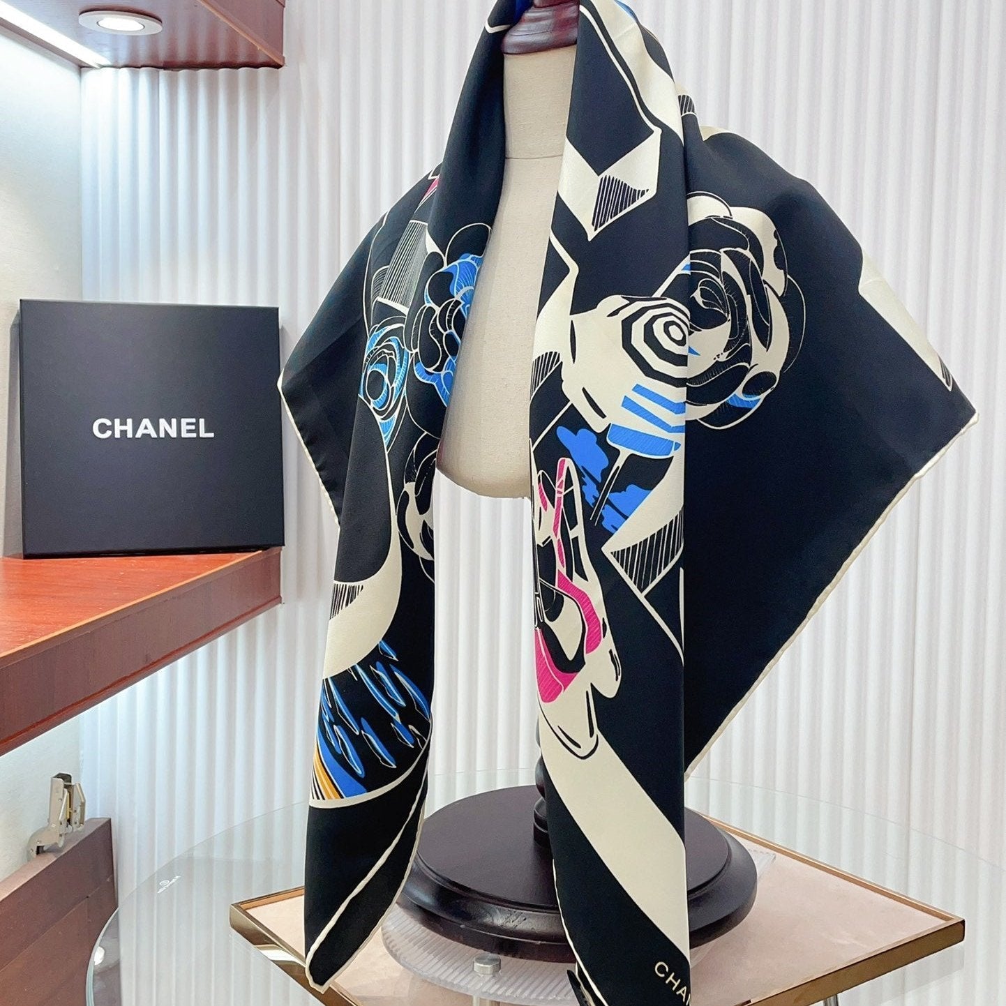 CC Square Scarf 90 CM In Black Camellia Silk Twill 193837