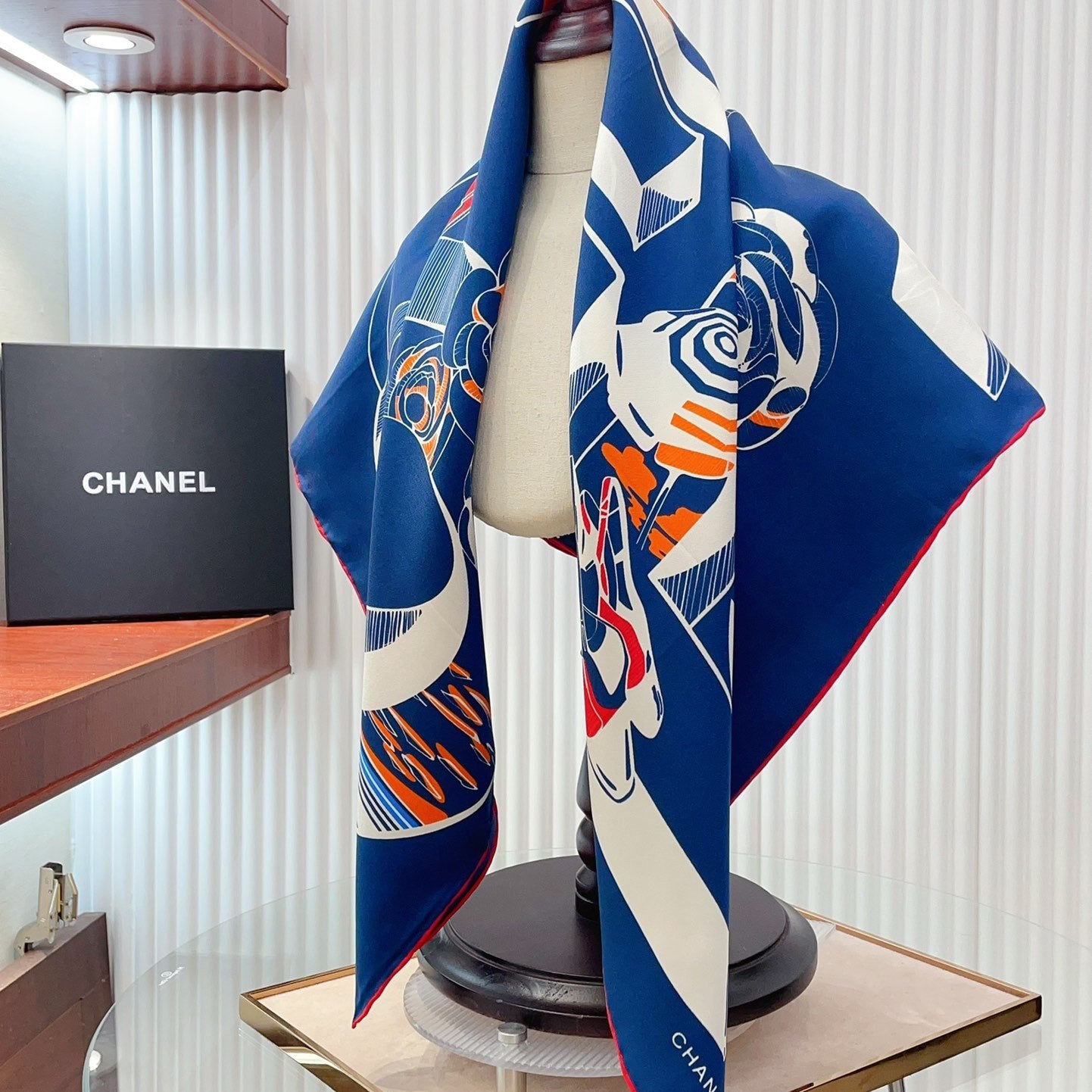 CC Square Scarf 90 CM In Blue Silk Twill 201029