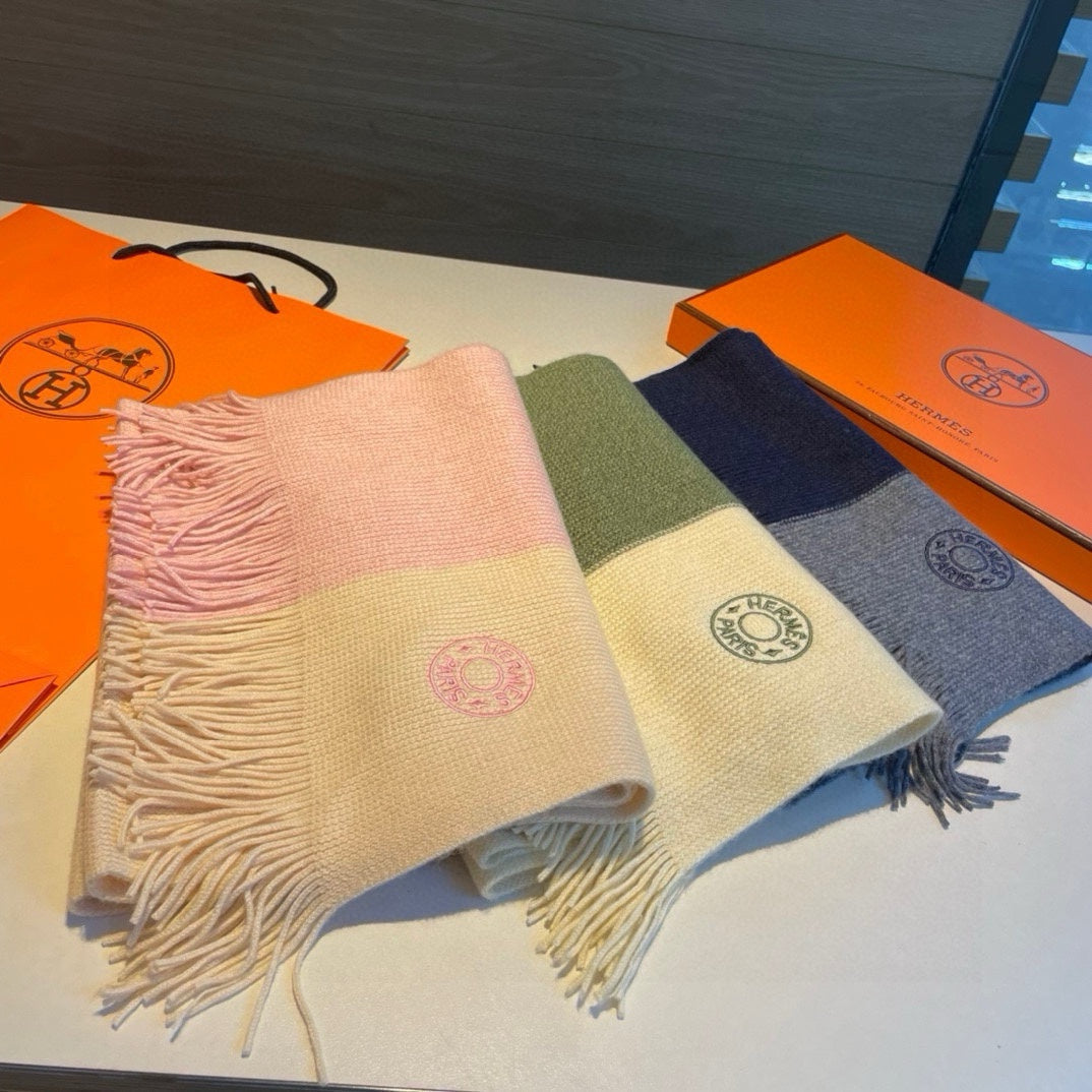 SCARF 180 CM IN LIGHT PINK MIX KHAKI BROWN CASHMERE WITH EMBROIDERED LOGO