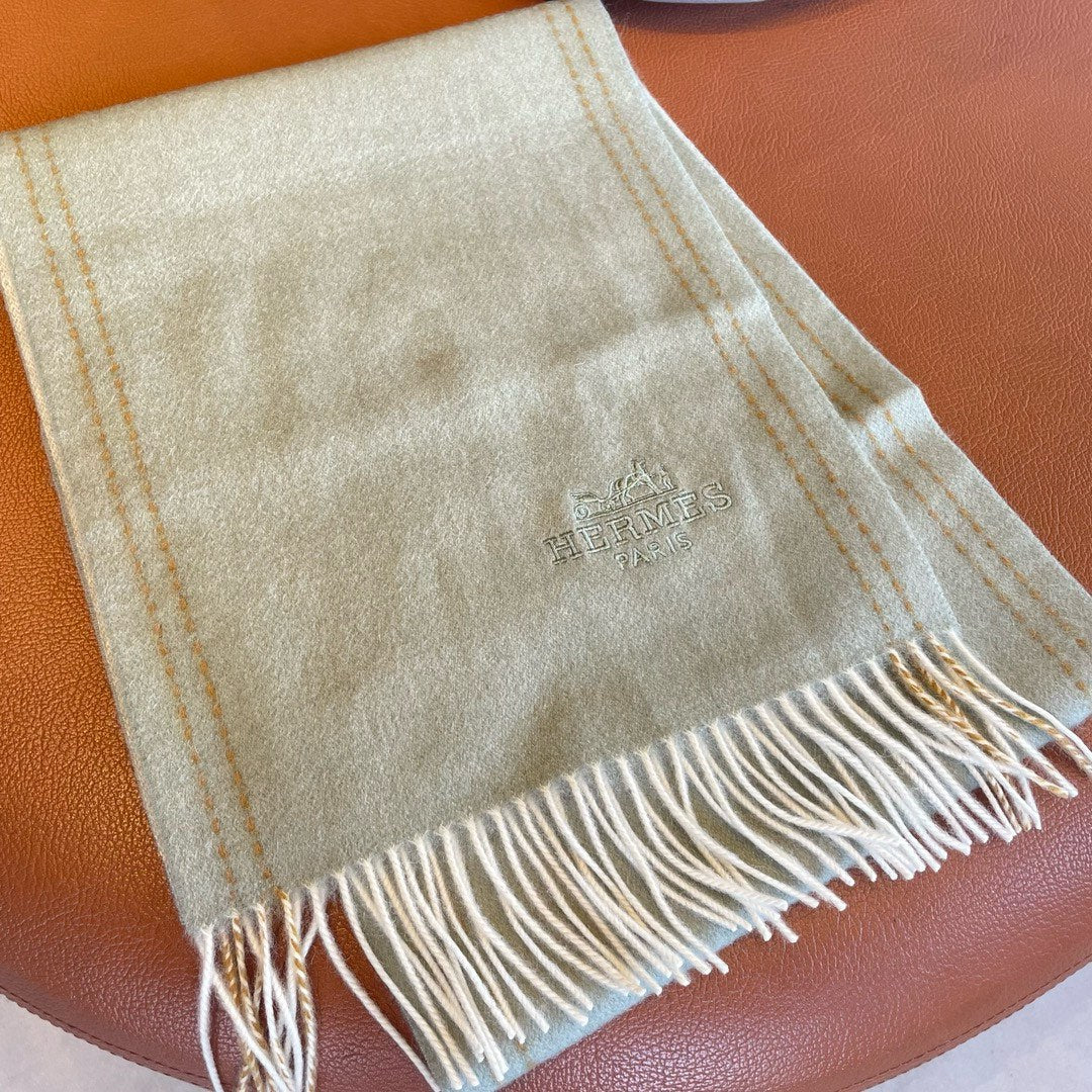 HIGH-END SCARF 180 IN MOSS GREEN MIX BEIGE CASHMERE