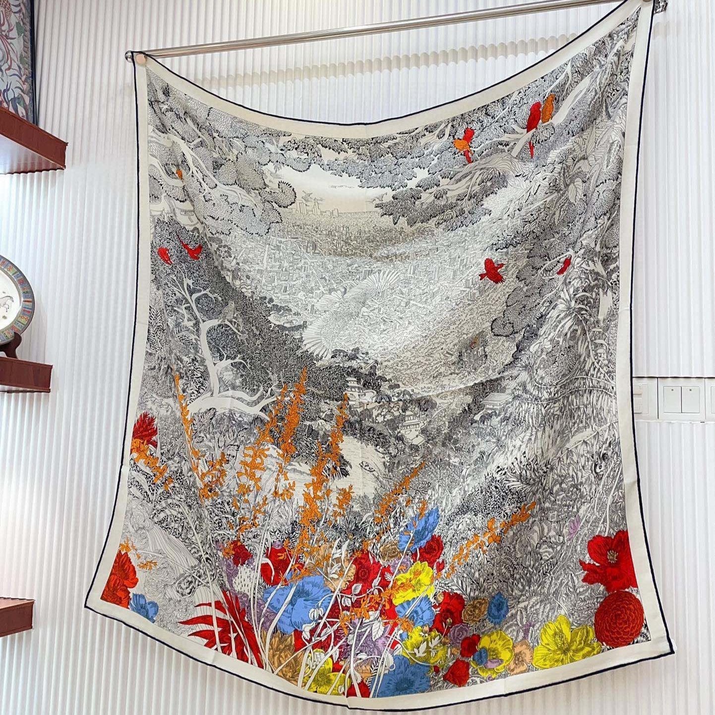 Retourala Nature Hermes Scarf 140 CM White Black Colorful Silk