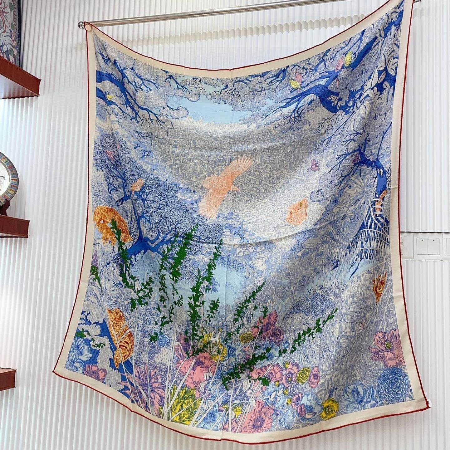 Retourala Nature Hermes Scarf 140 CM Turquoise Colorful Silk