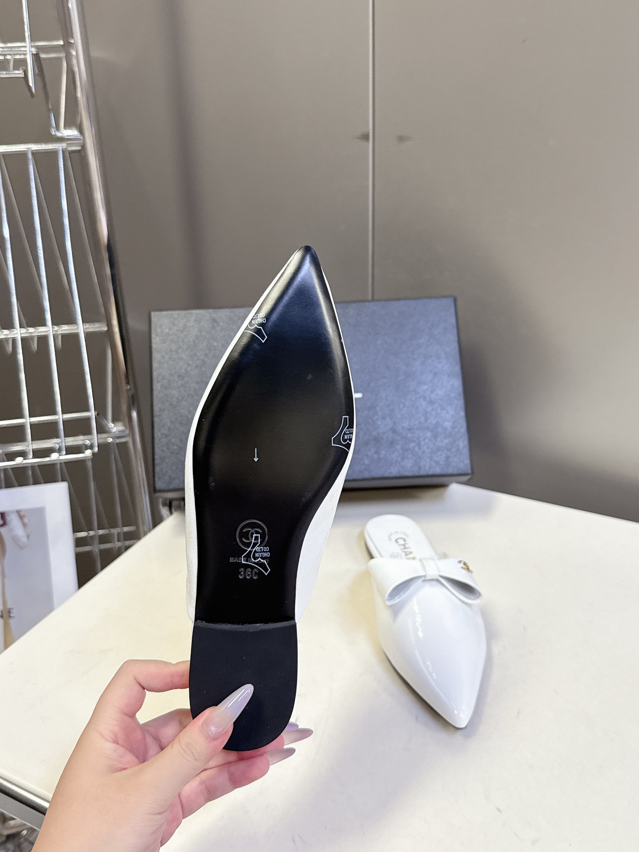 CC 25 Mules White Calfskin Patent Leather 353926