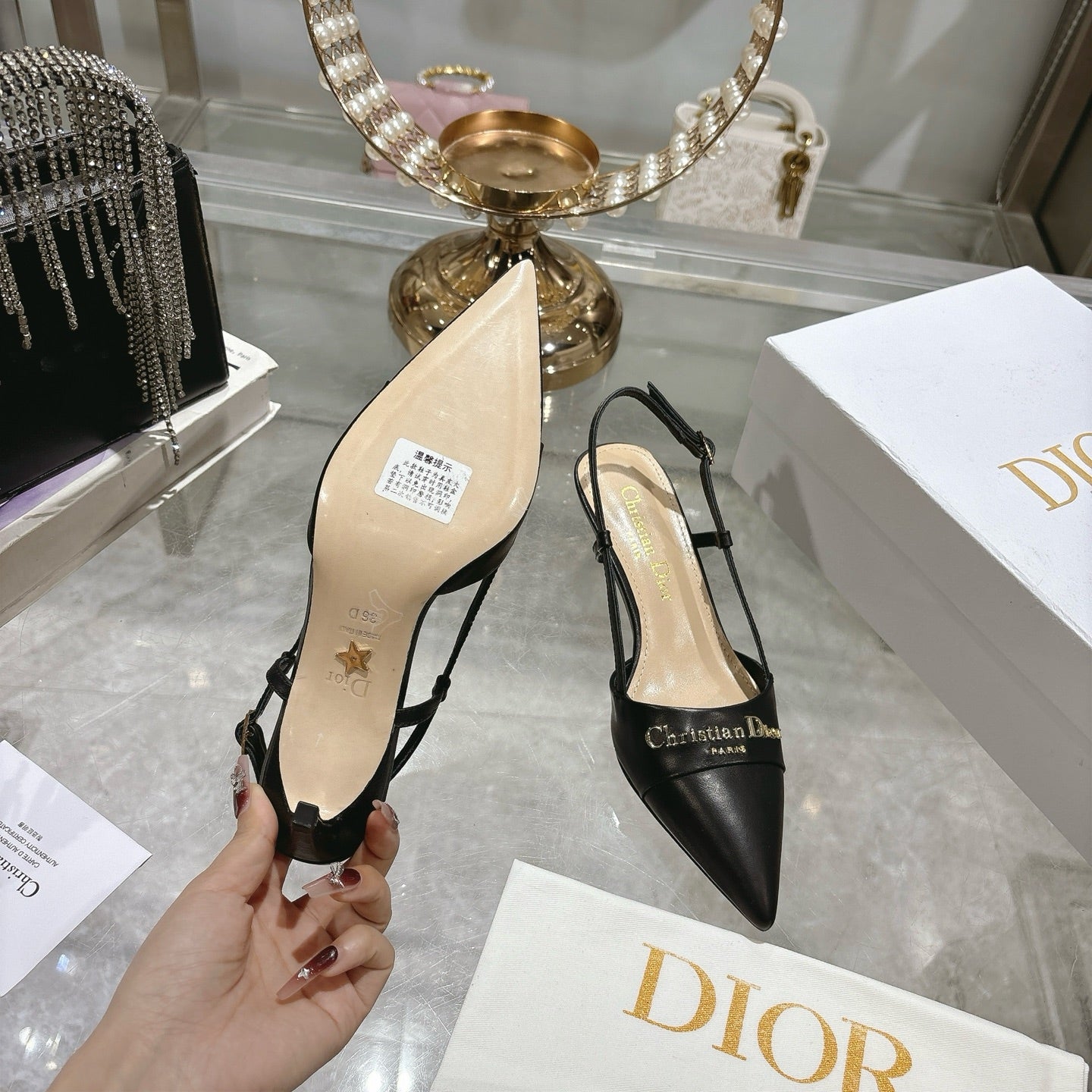 CD 25 Slingback Heel Black Leather 306926