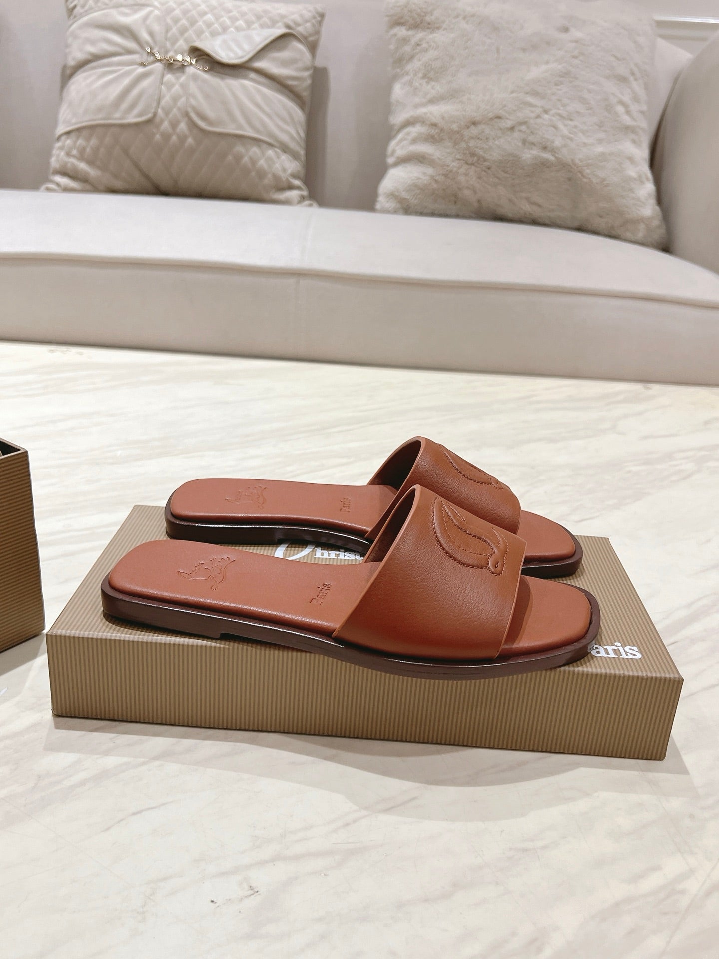 CL 25 Slippers Brown Top Layer High Gloss Calfskin 307502