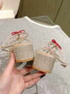 RC 25 Add Bow Diamond High Heeled Orange Silk Rhinestones 268072
