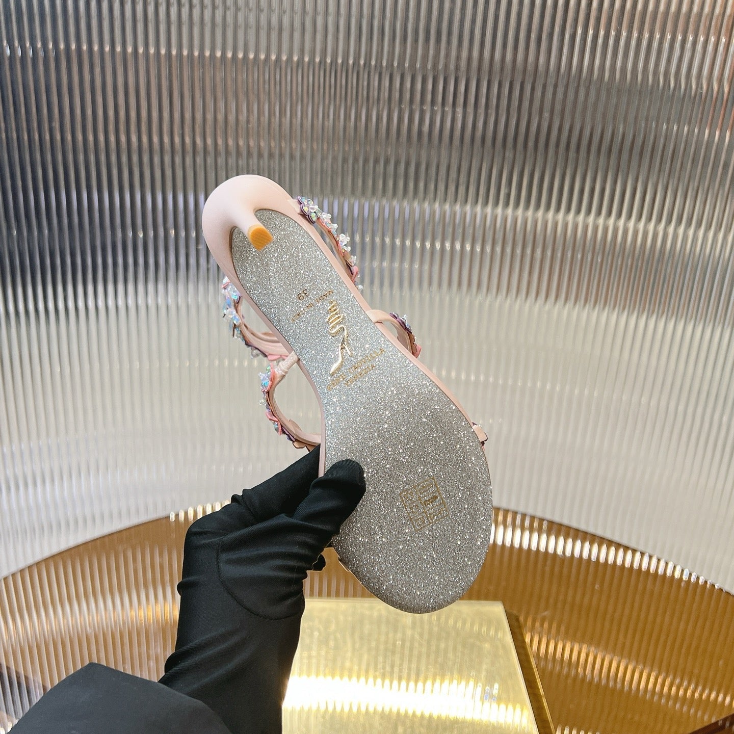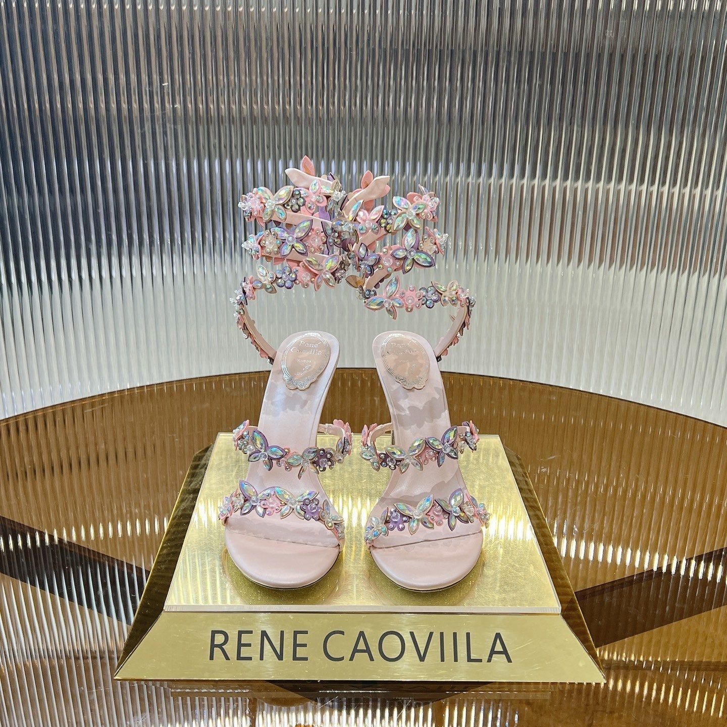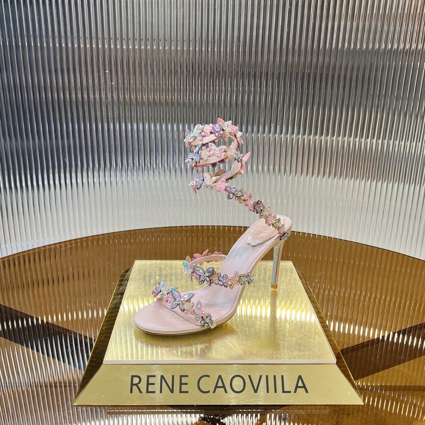 RC 25C Butterfly Flower High Heels Sandals Pink Sheepskin Rhinestone 281974