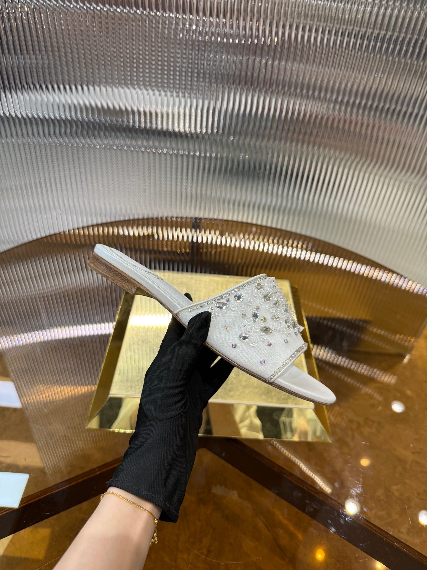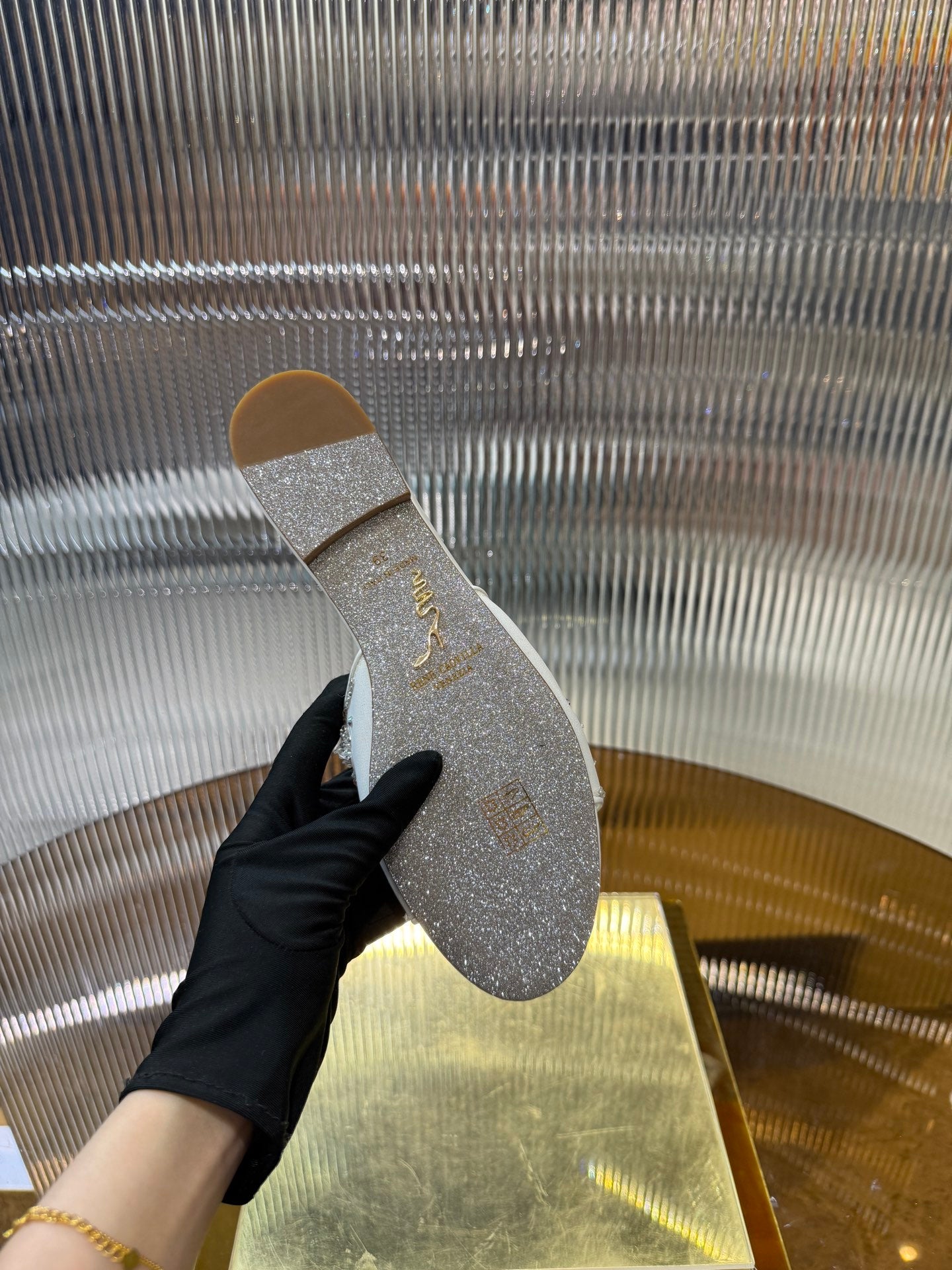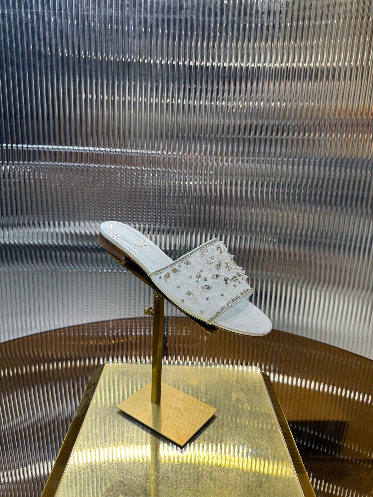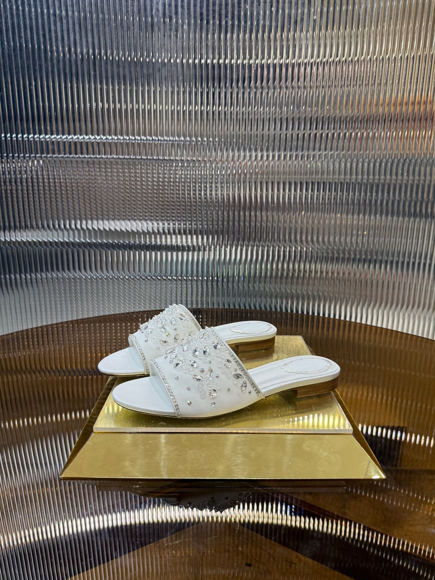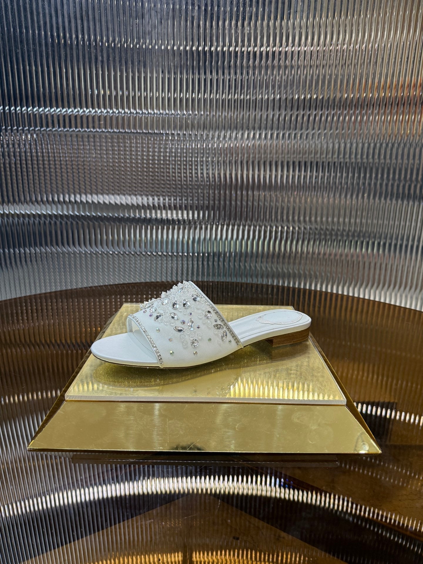 RC 25C Butterfly Flower Sandals Slippers White Sheepskin Rhinestone 275764