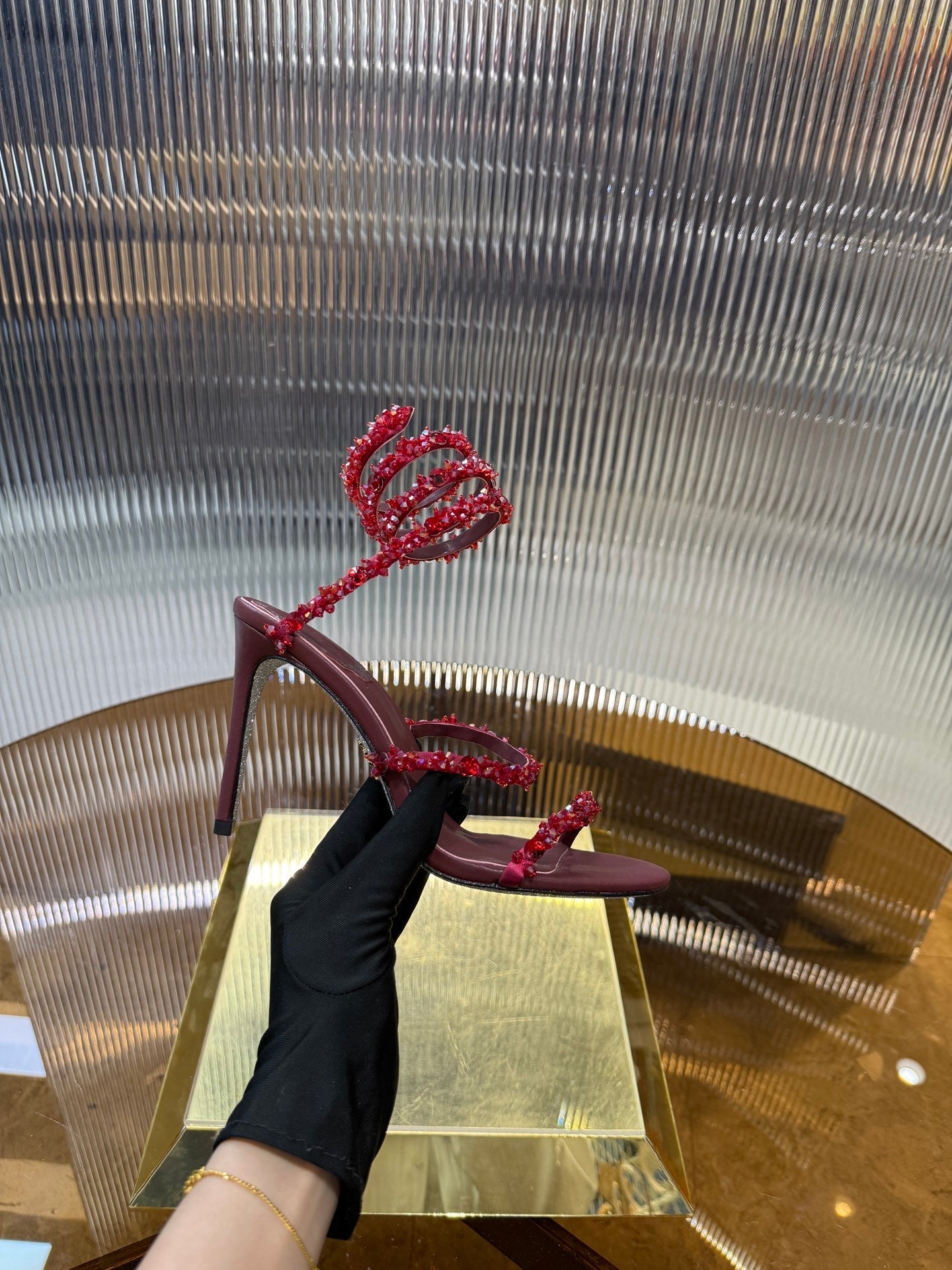 RC 25C Crystal Diamond Sandals Red Sheepskin Rhinestone 275779