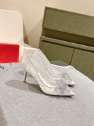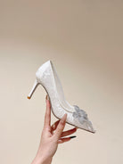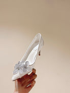 RC 25C Flower High Heel 7.5cm White Silk Rhinestones 268083