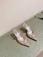 RC 25C Slingback Diamond High Heel 7.5cm Beige Silk Rhinestones 268079