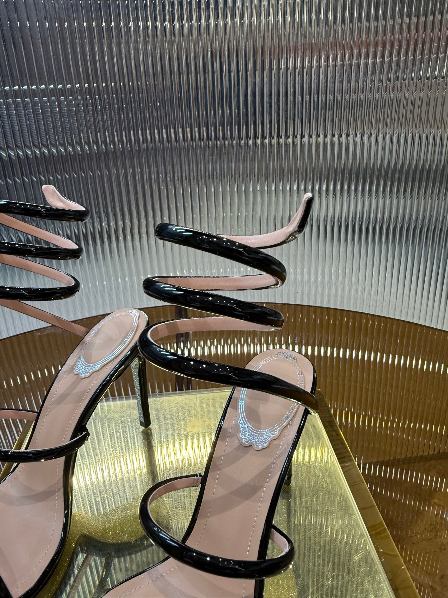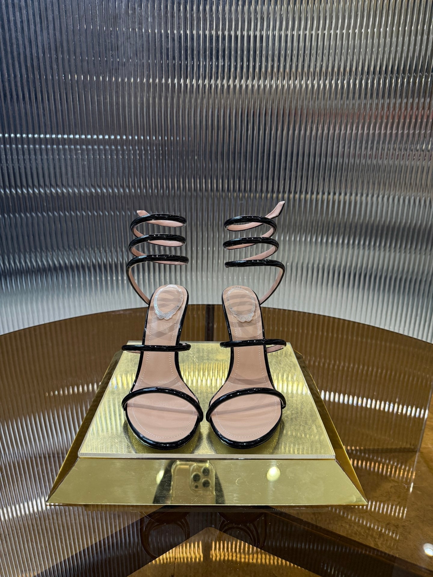 RC 25C Snake-Shaped Sandals 9.5cm Black Sheepskin 310626