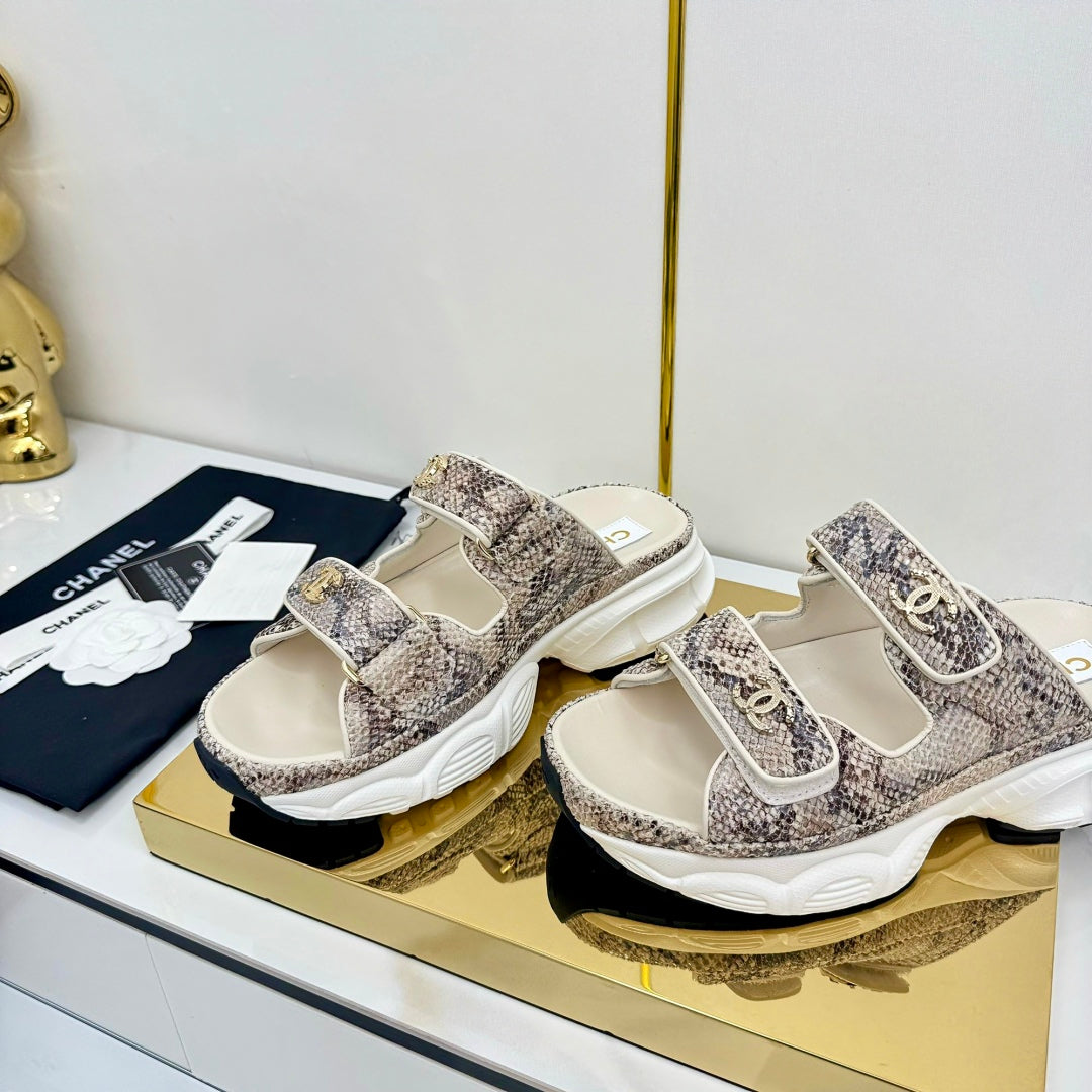 CC 25 Flower Thong Slippers Beige Cowhide 233417