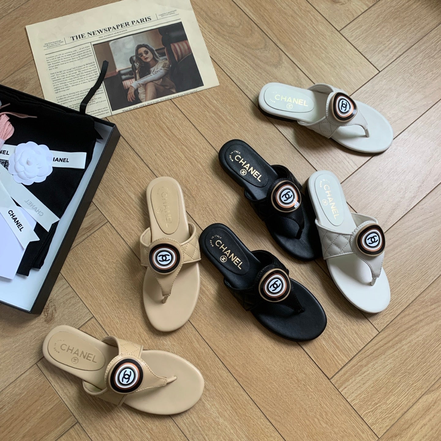 CC 25 Flower Thong Slippers Gold Cowhide 233416