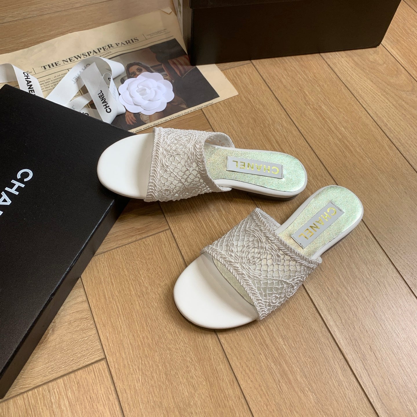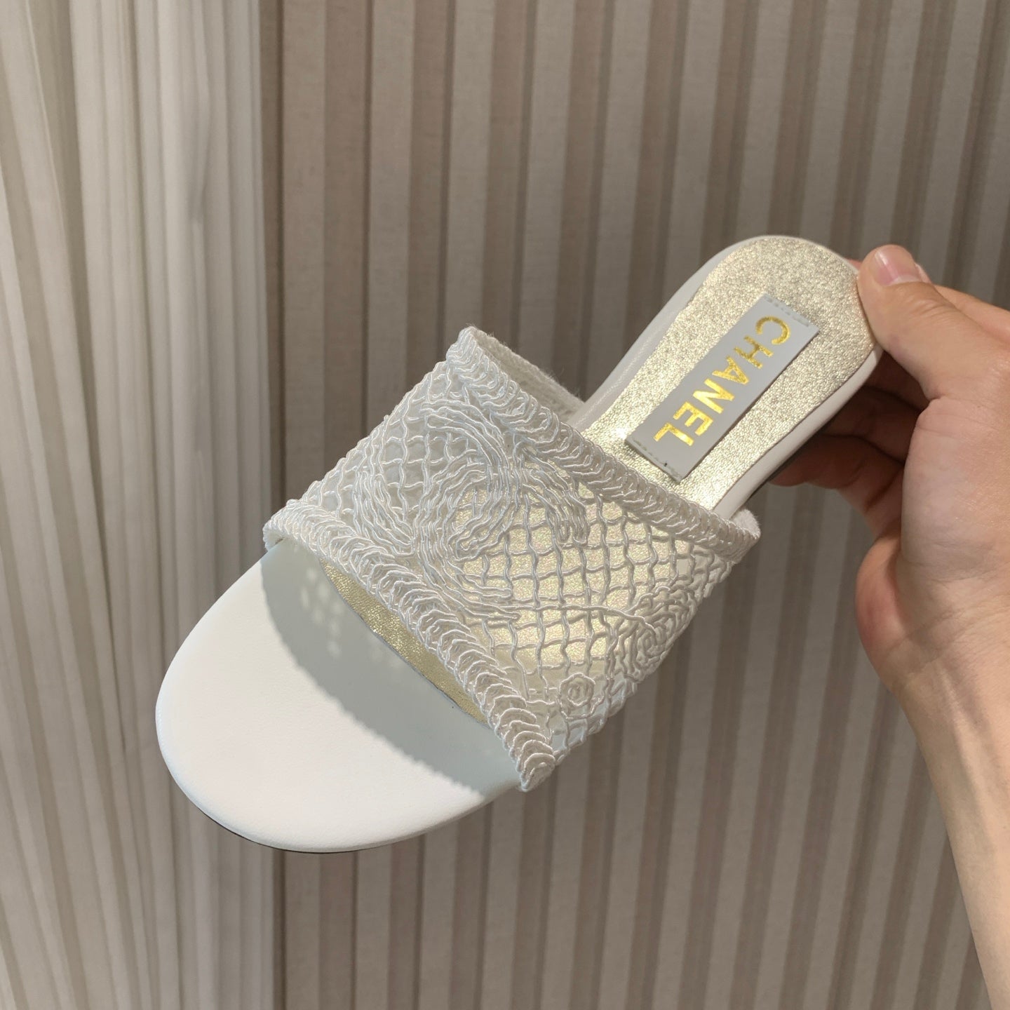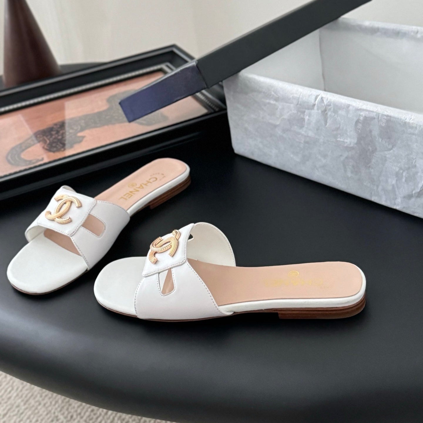 CC 25 Flower Thong Slippers White Cowhide 233415