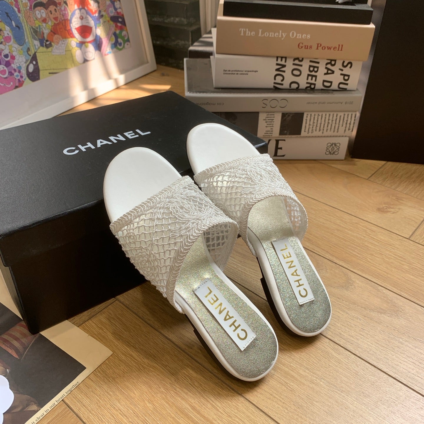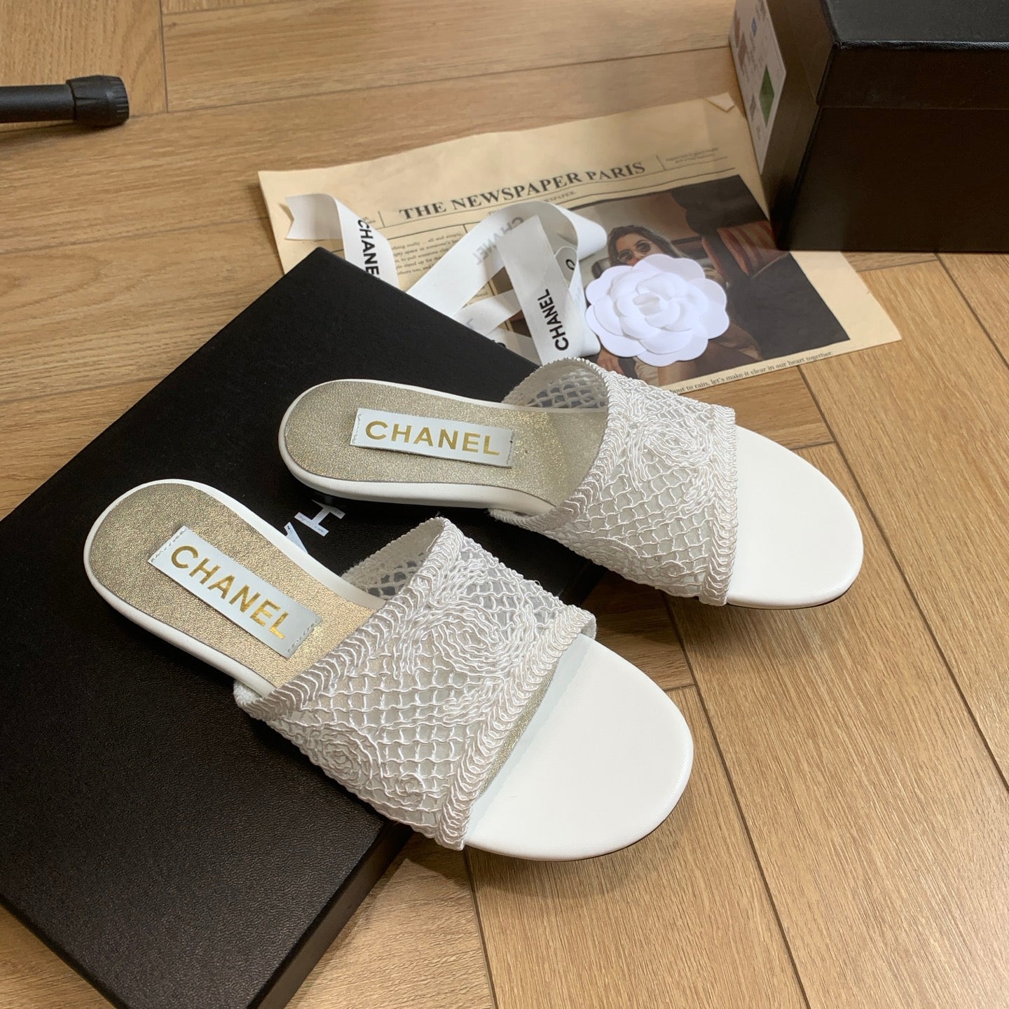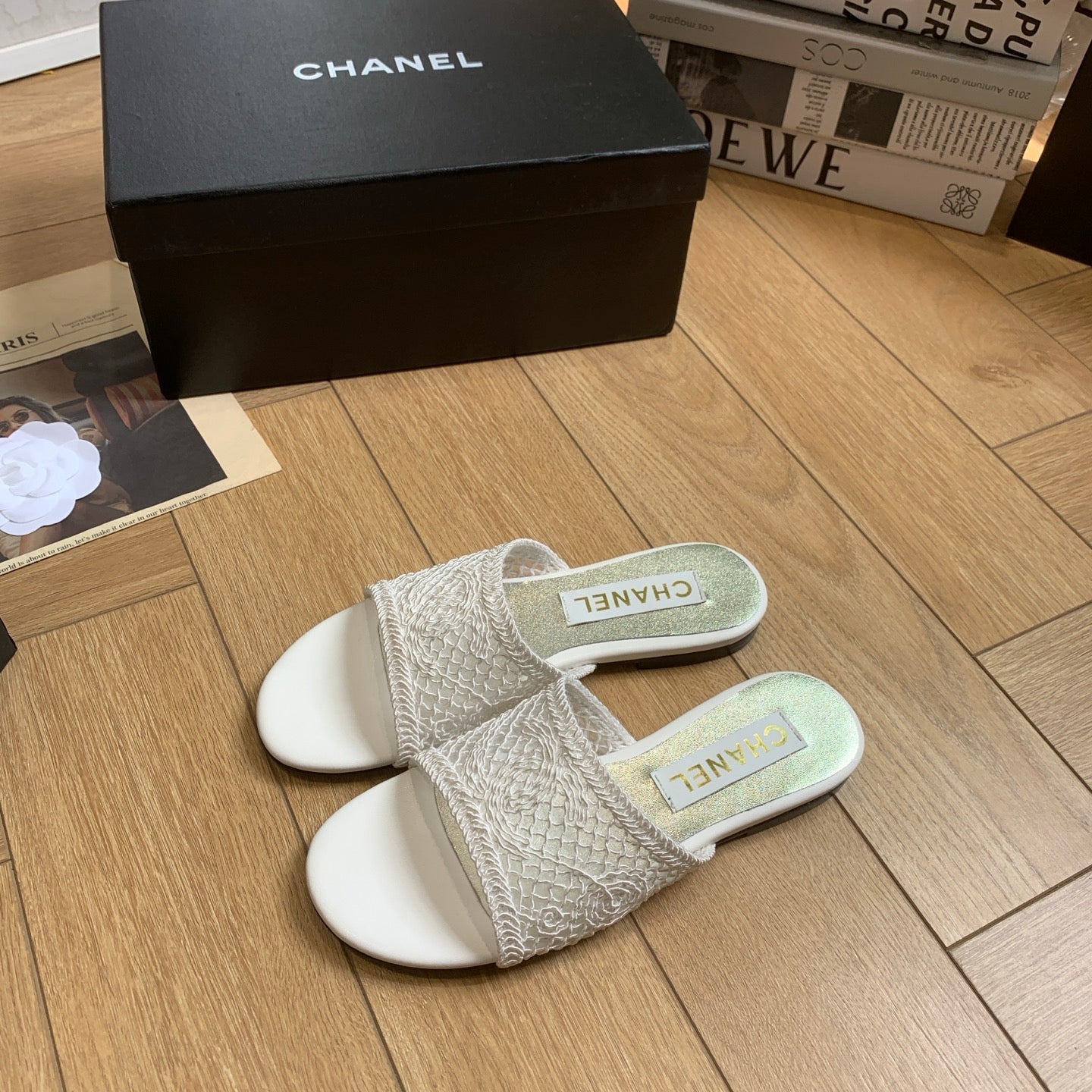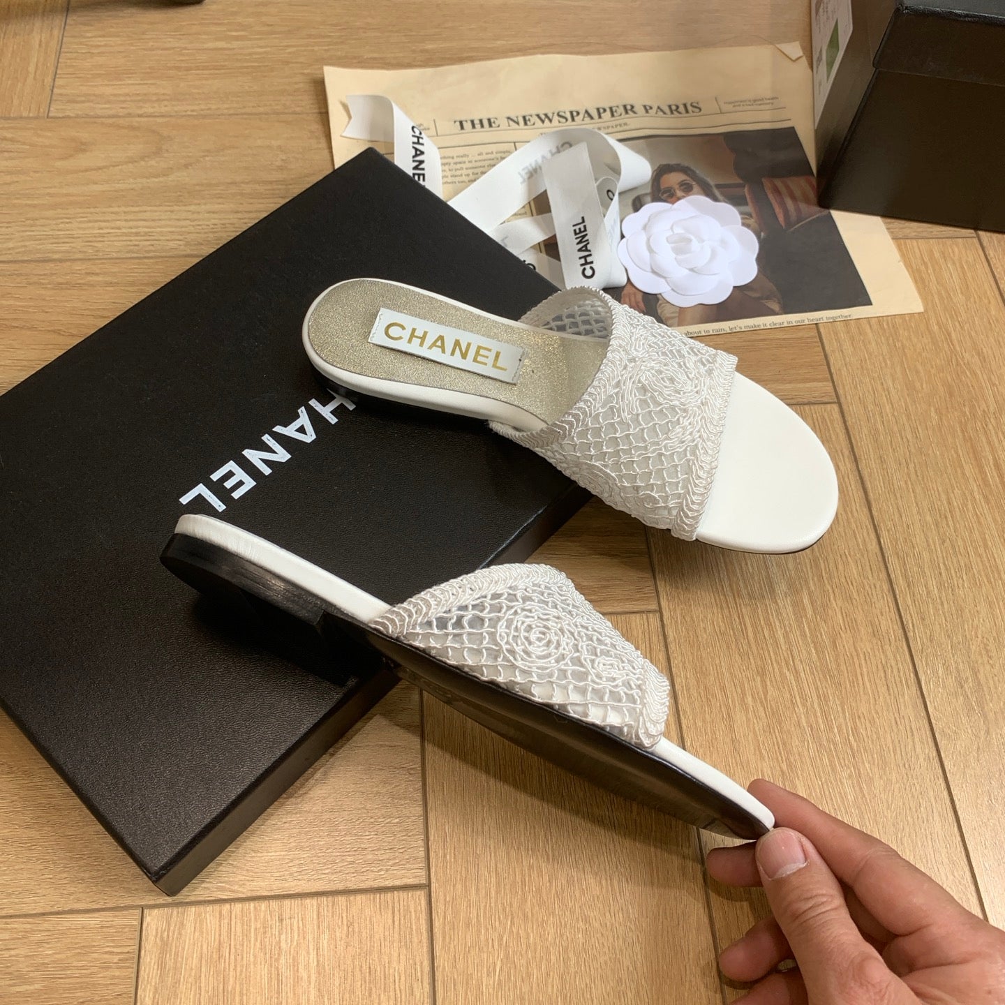 CC 25 Flower Thong Slippers White Cowhide 233415