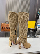 FENDI knee boots high heel monogram beige cowhide 521220