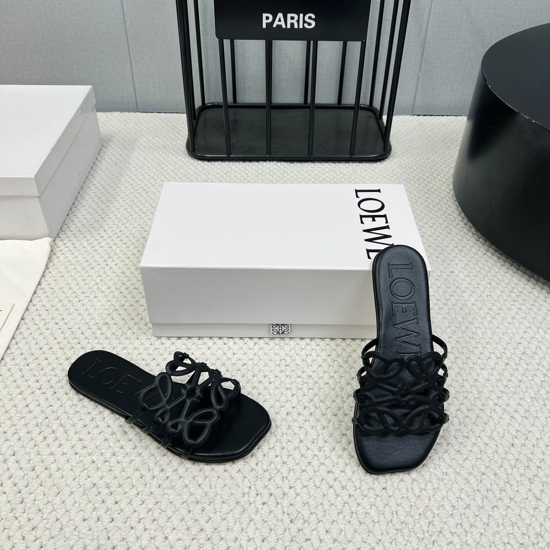 Loewe 25 Petal Anagram Slides Black Cowhide