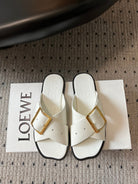 Loewe 25 Petal Belt Flat Sandals White Sheepskin 212777