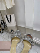 Mach & Mach Double Bow Metallic Mules 65mm Silver calfskin