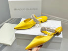 Manolo Flats Mules Diamond Buckle Yellow Silk Satin 327483